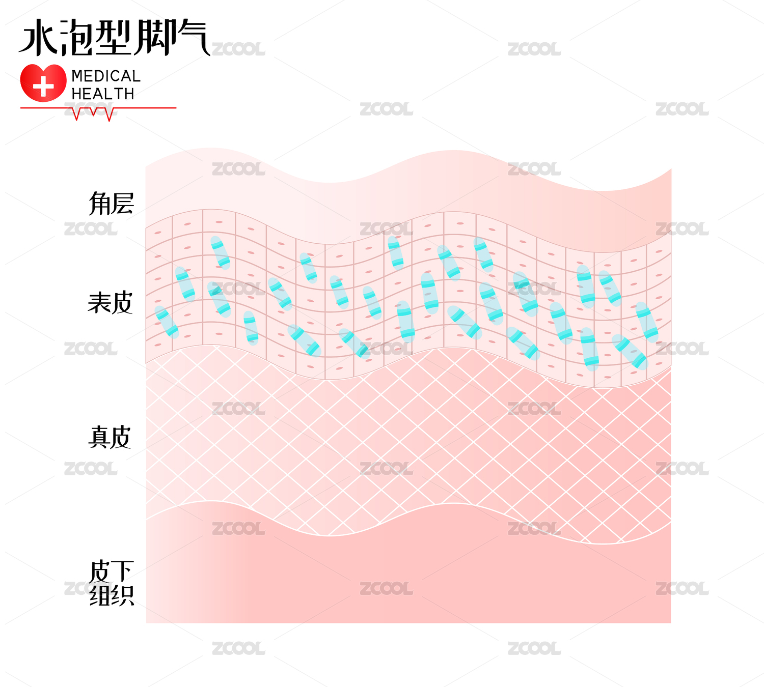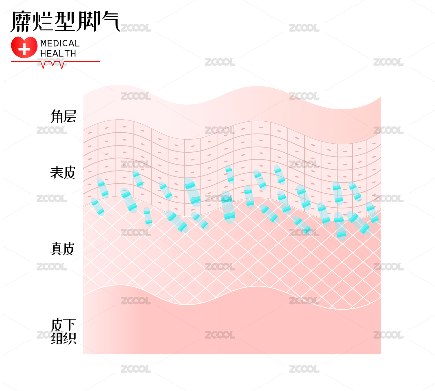 真菌侵蝕表皮真皮形成糜爛型腳氣矢量插畫