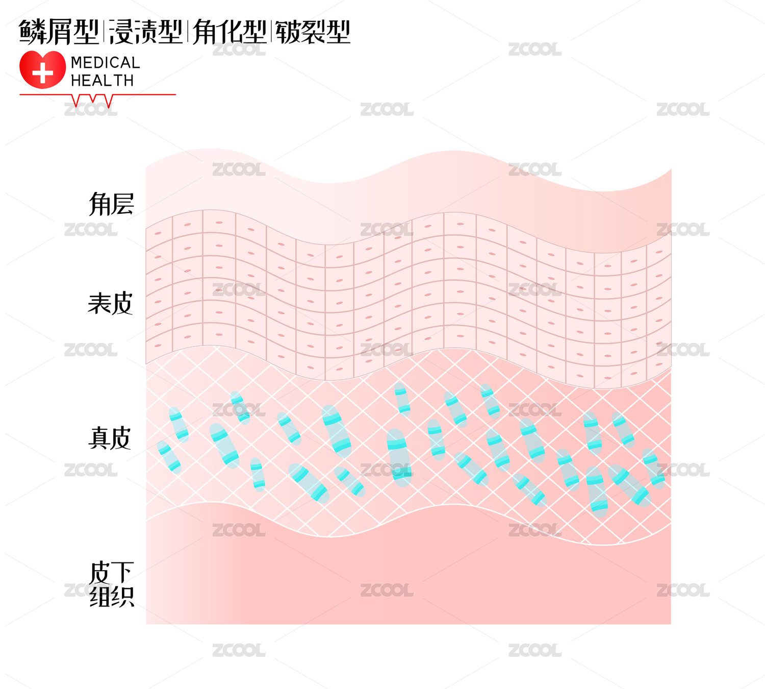 真菌侵蝕表皮真皮細(xì)胞矢量插畫素材
