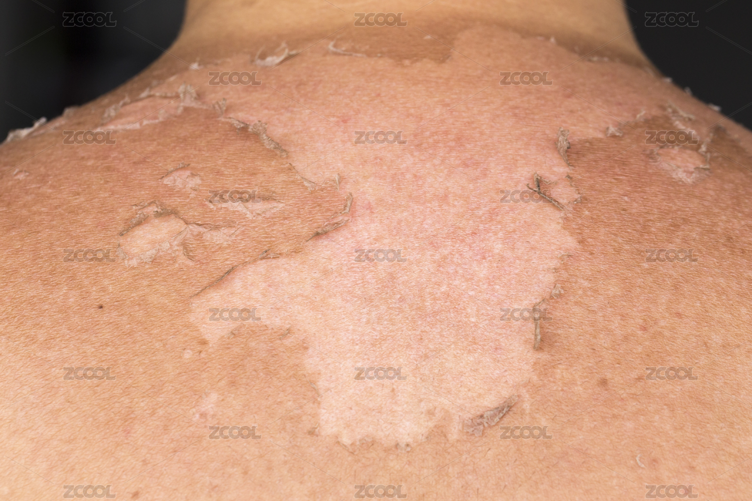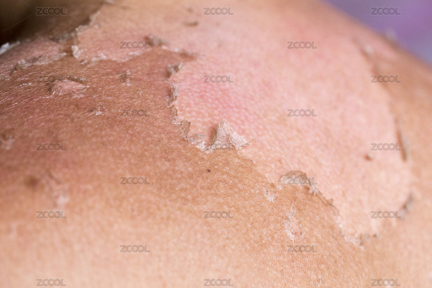 曬傷的人肩膀脫皮的皮膚局部特寫