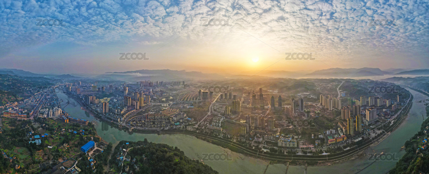 貴州遵義茅臺鎮(zhèn)赤水河城市建筑航拍風光