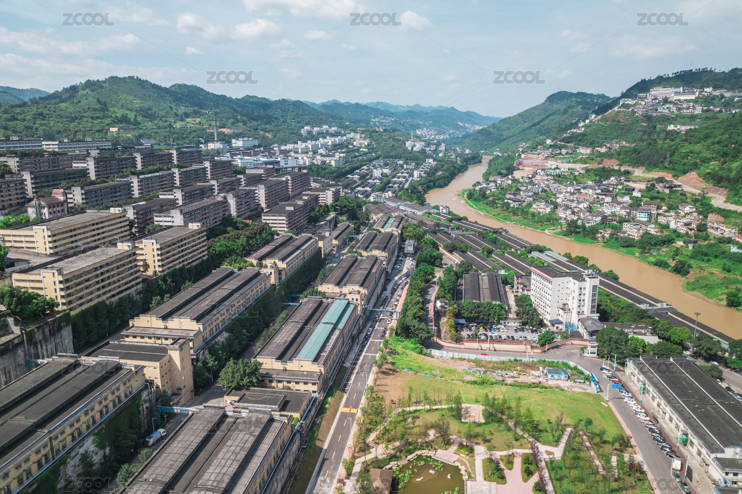 貴州遵義茅臺鎮(zhèn)酒廠赤水河城市航拍風光