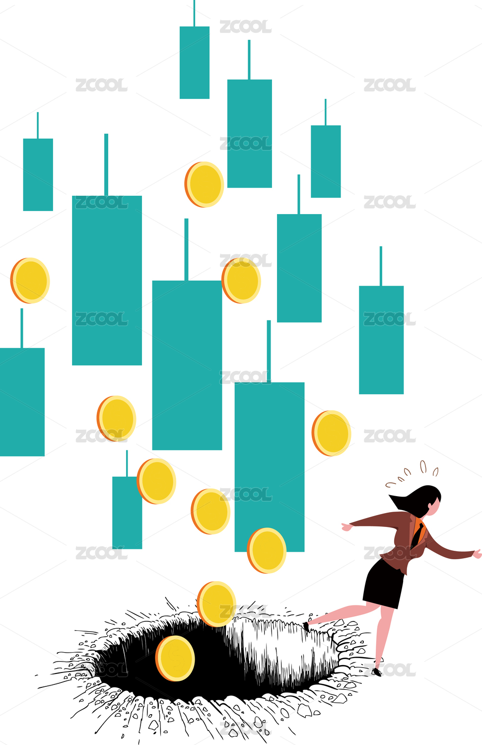 綠色的下跌箭頭商務(wù)人士投資虧損出局