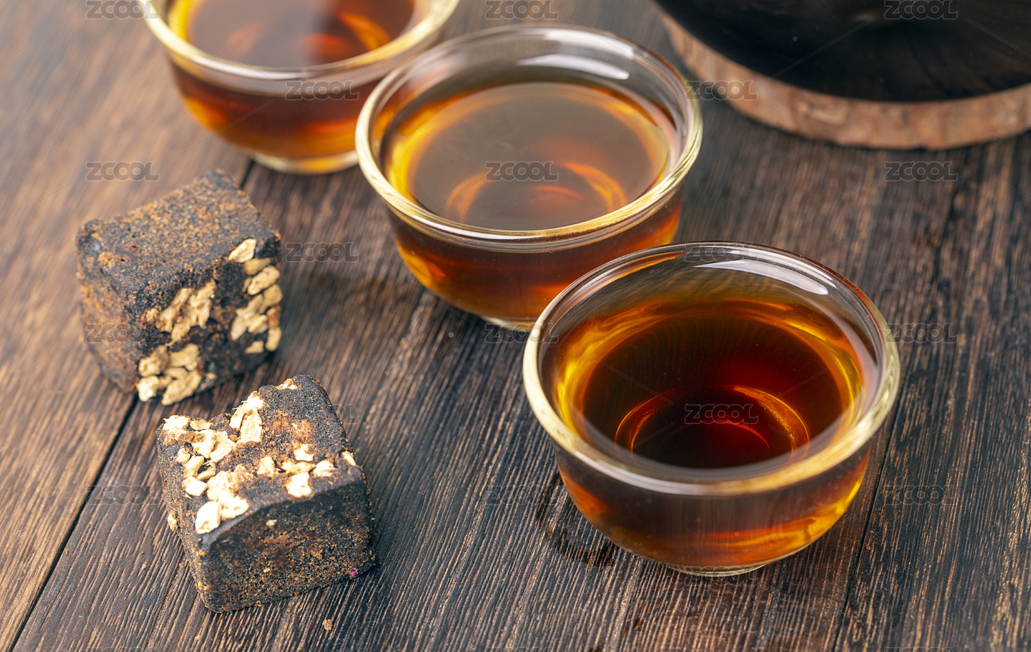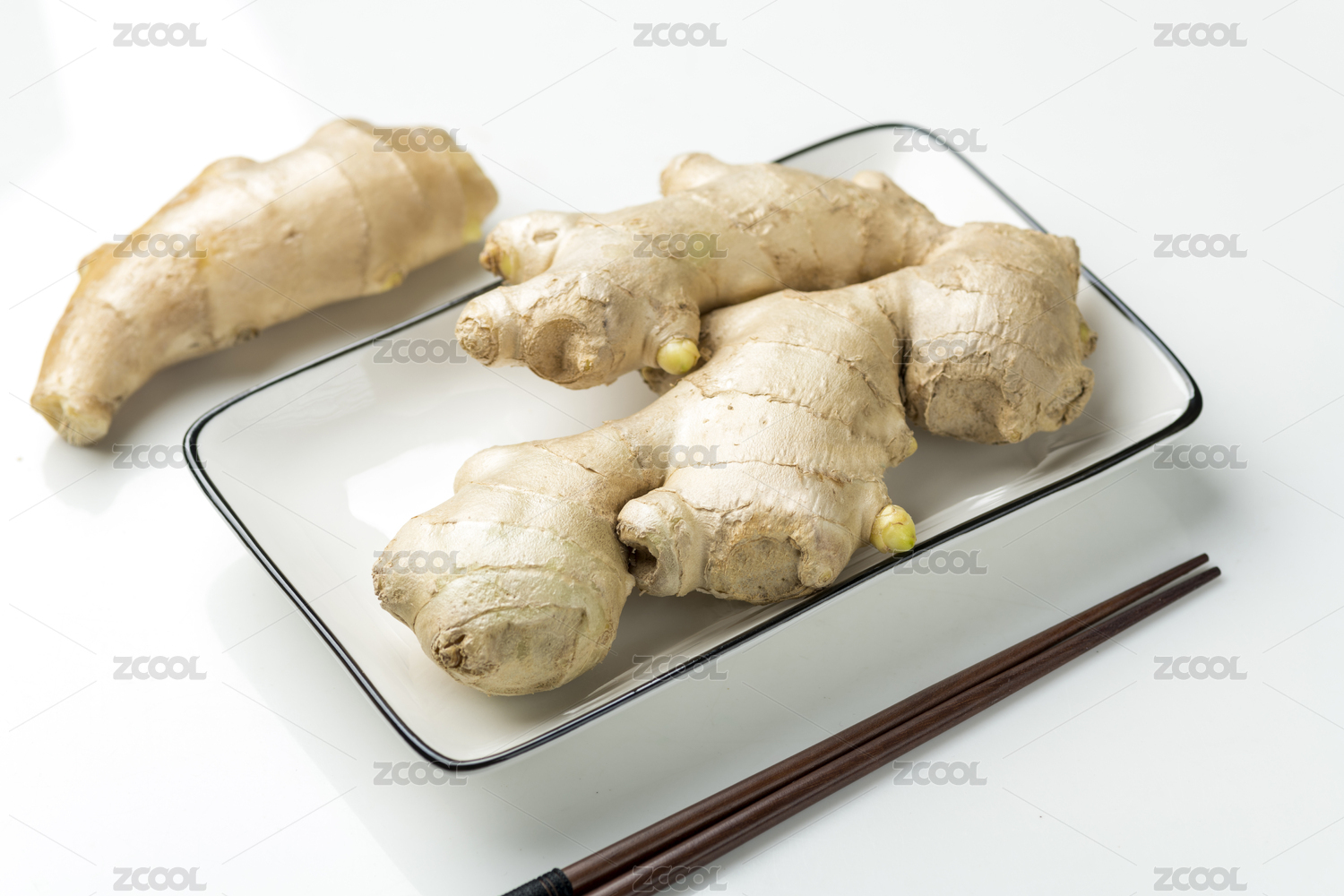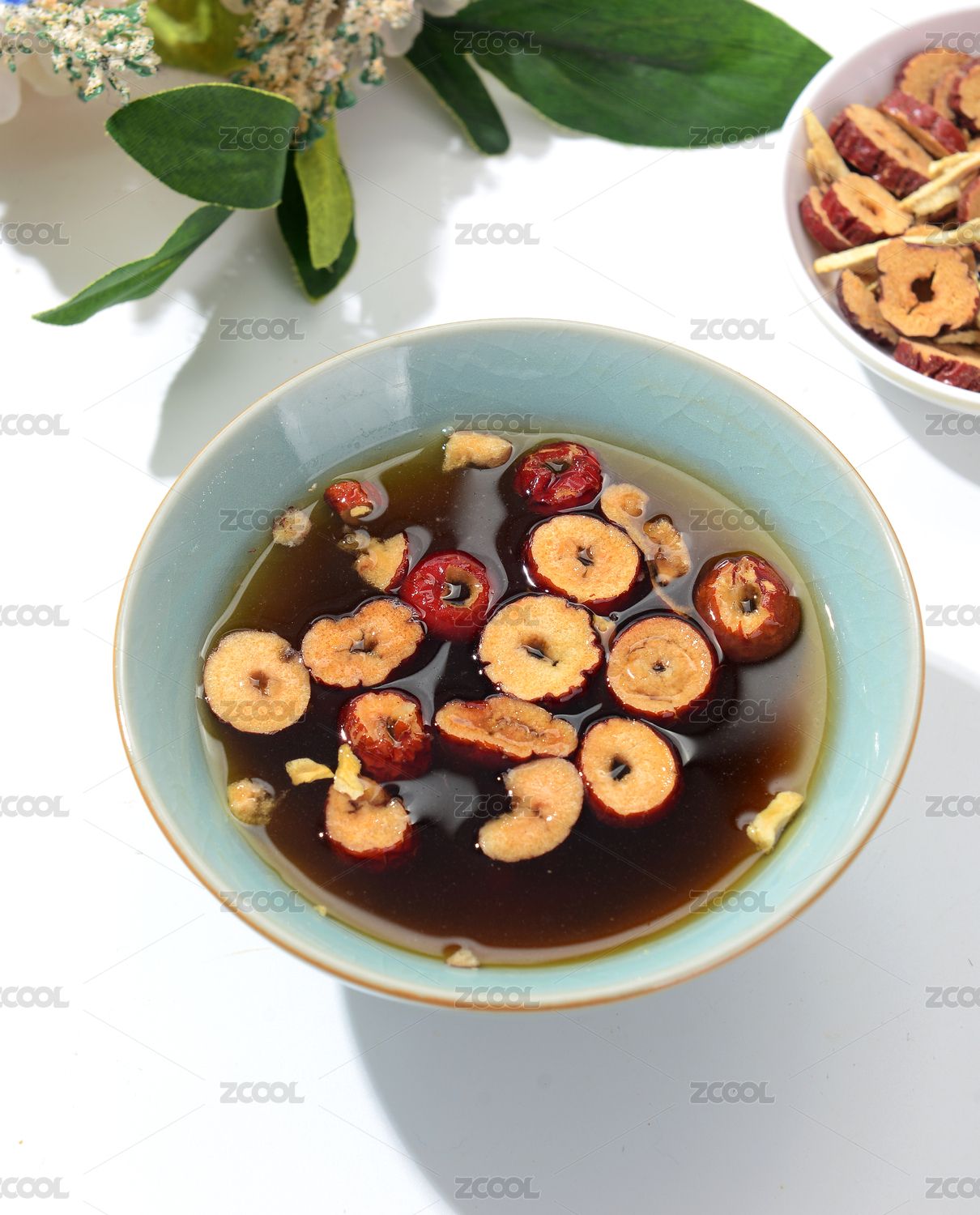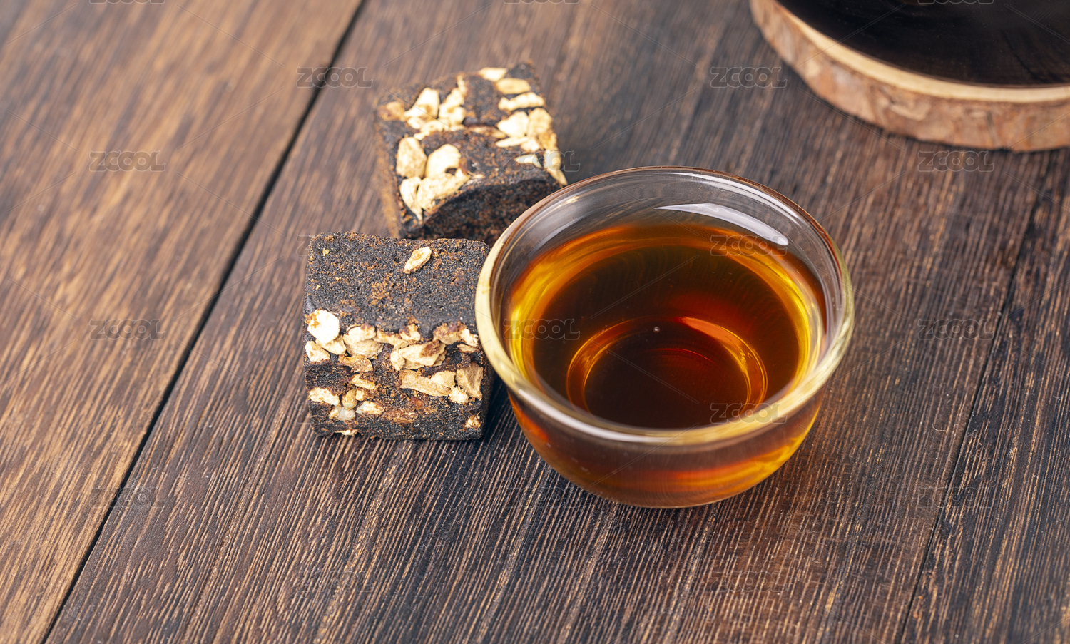 生姜與姜片姜茶擺放在桌面上特寫