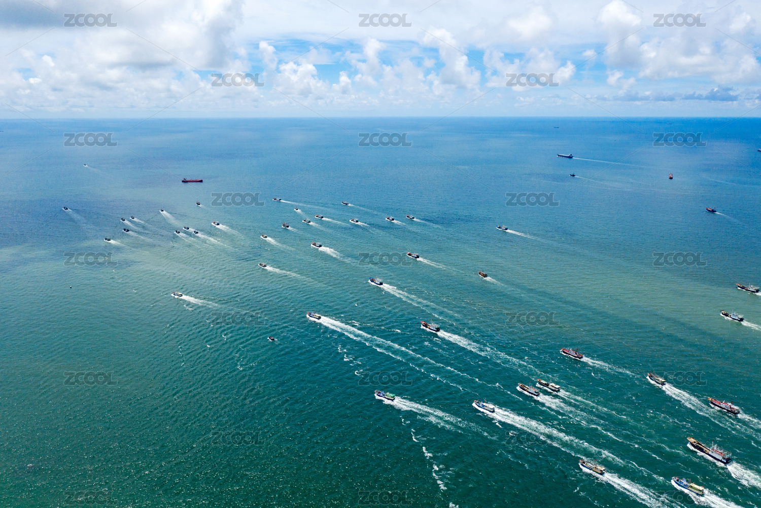 航拍中國(guó)海陵島開(kāi)魚(yú)節(jié)漁船駛向大海