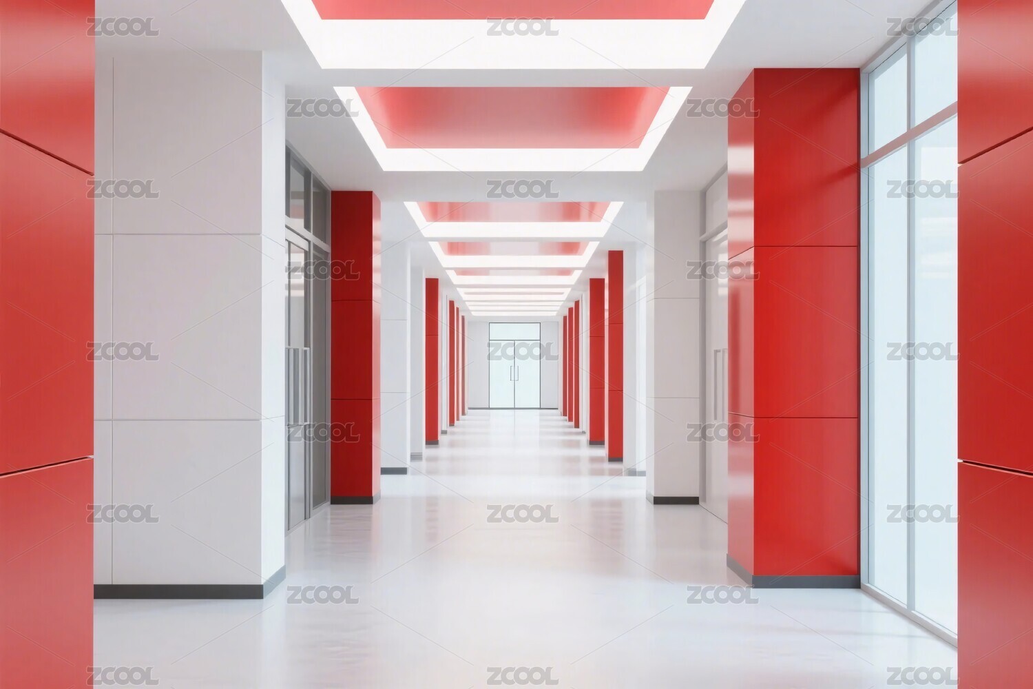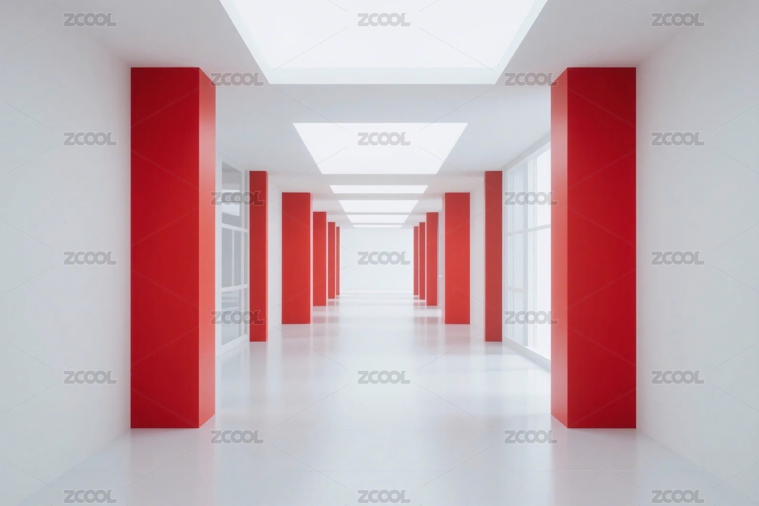 紅白配色的空曠走廊場(chǎng)景