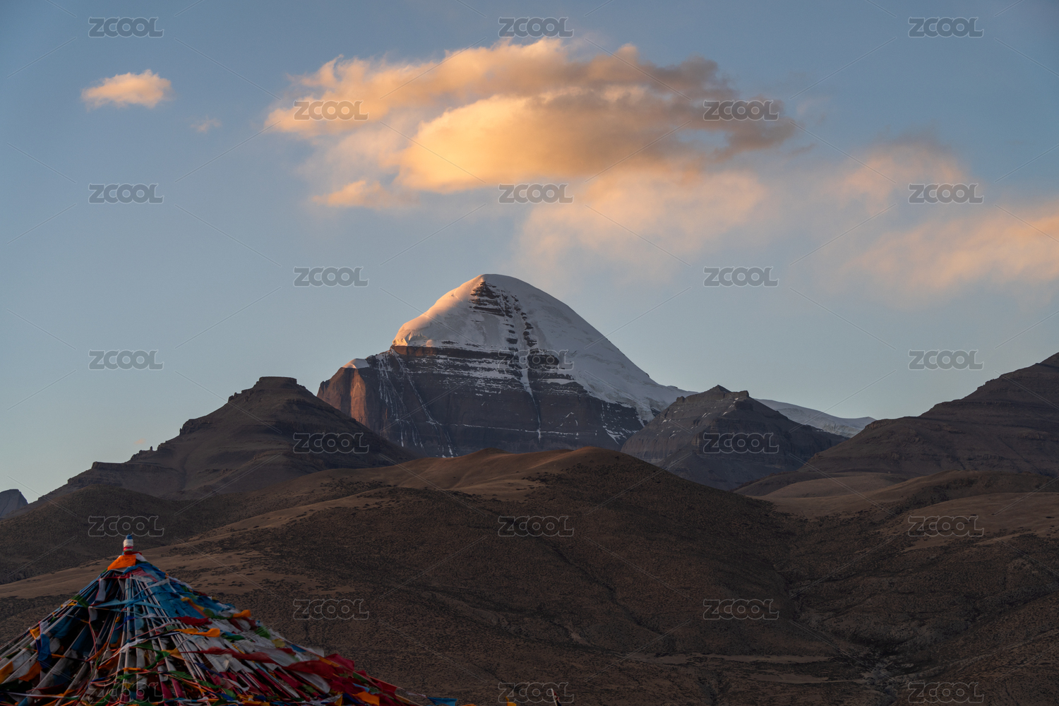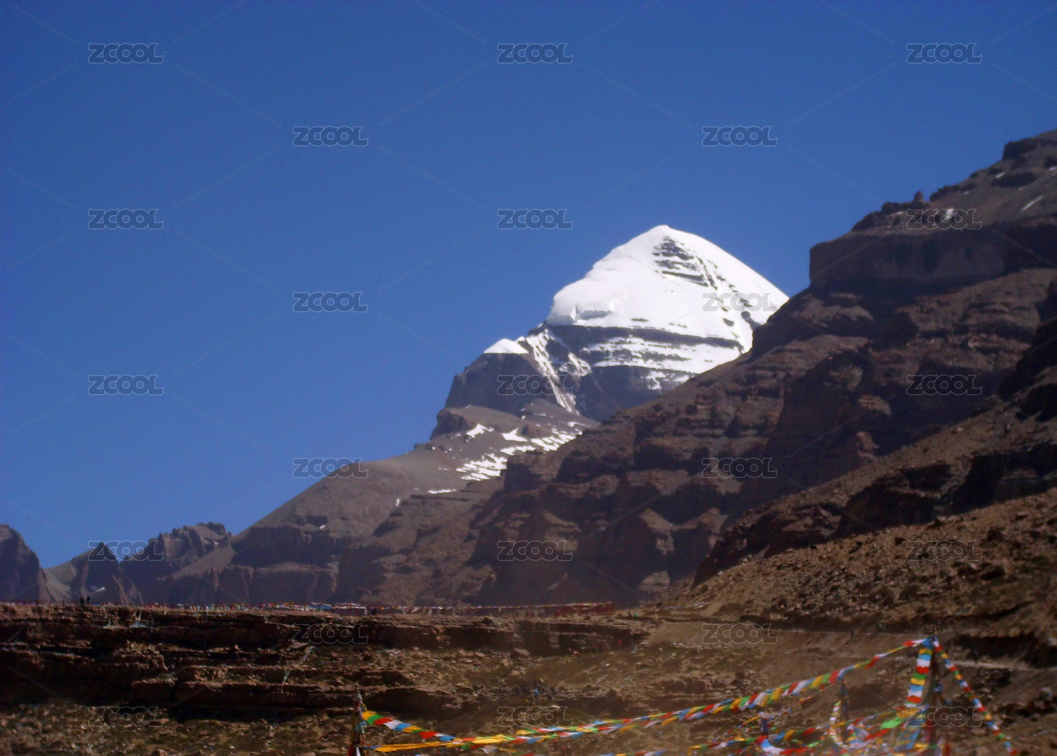 中國(guó)西藏阿里普蘭縣岡仁波齊峰與經(jīng)幡