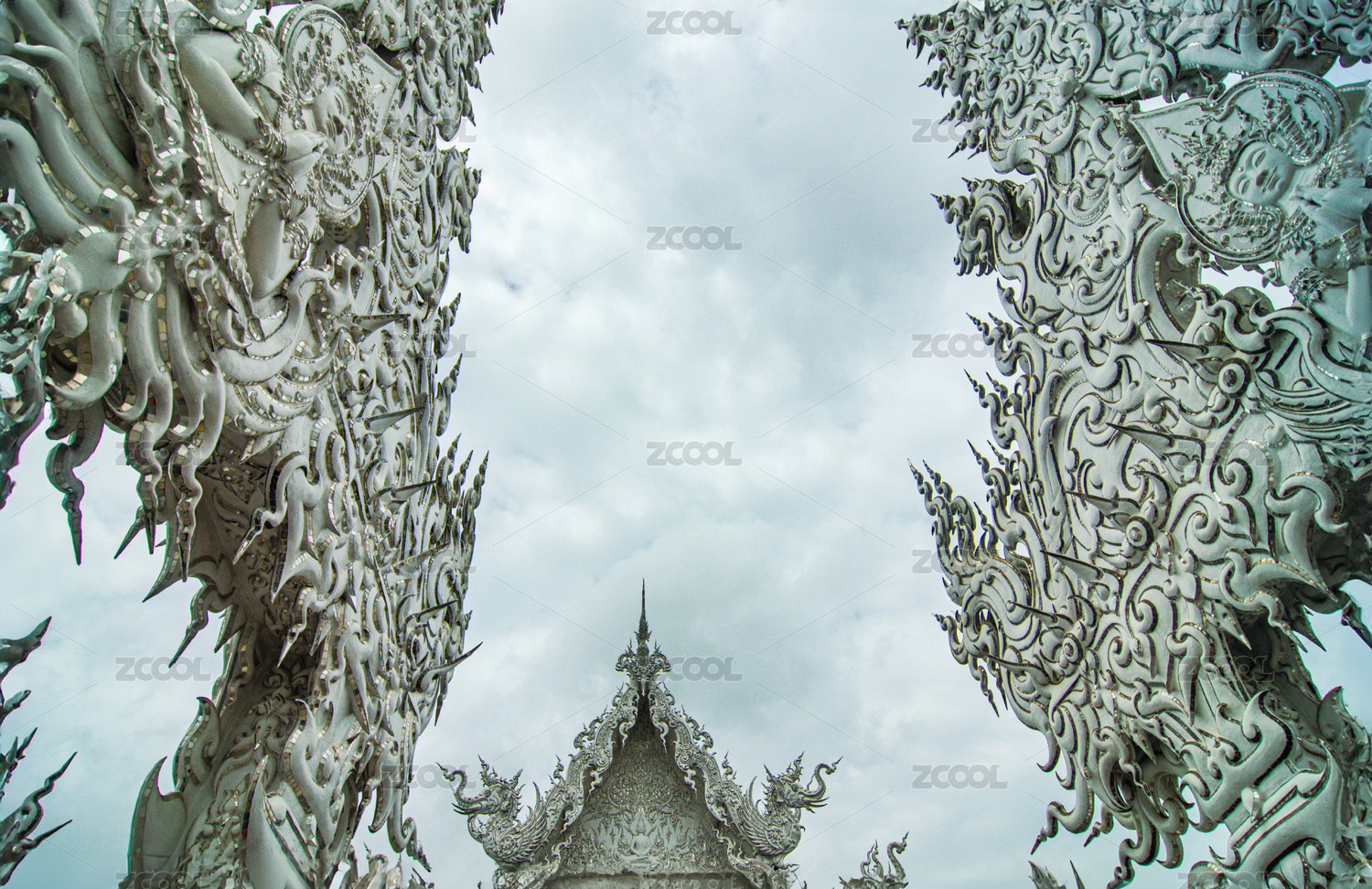 晴空下泰國清邁白廟的屋檐一角