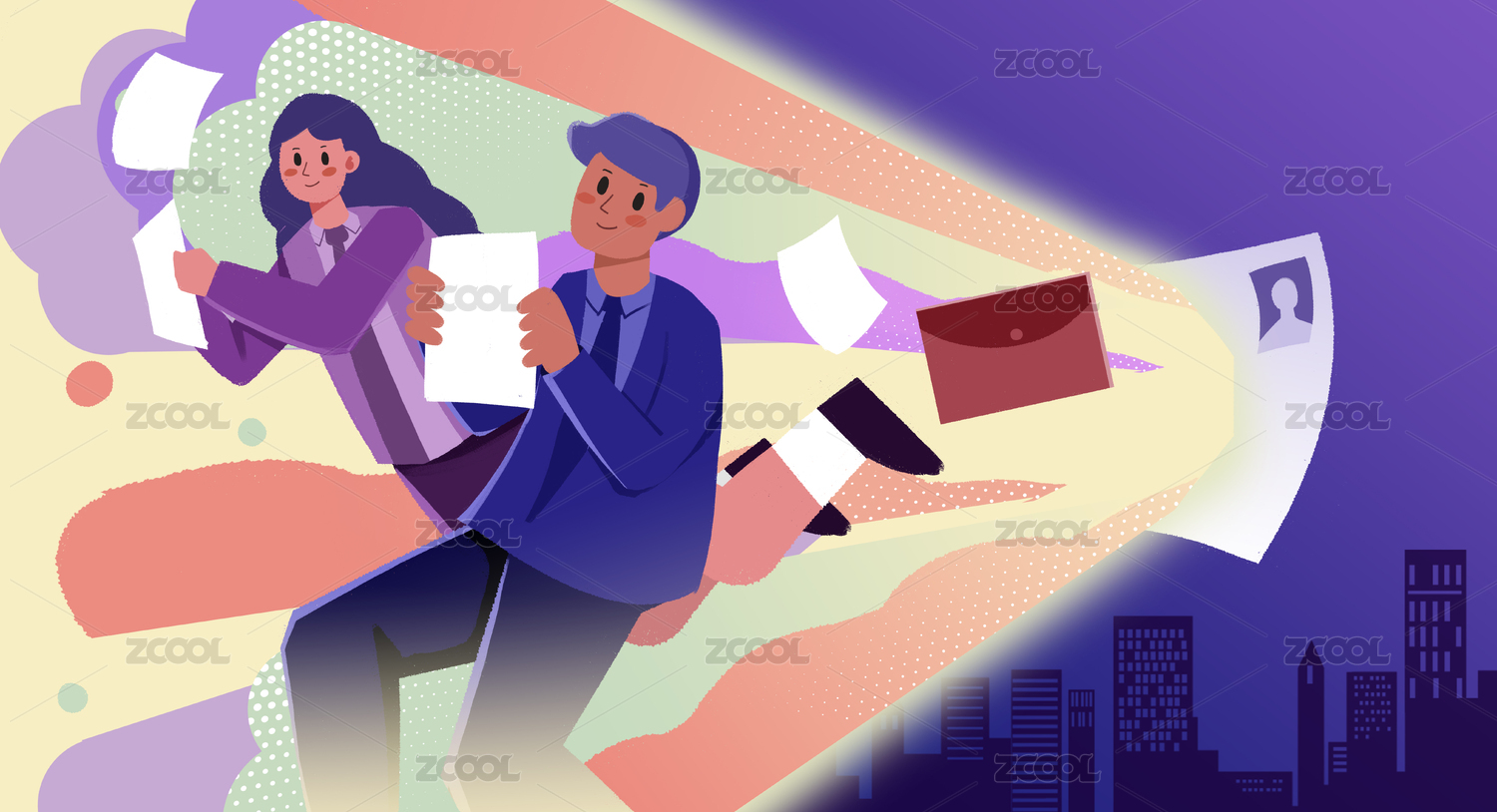 商務(wù)企業(yè)招聘矢量人物橫版新媒體海報(bào)插畫模