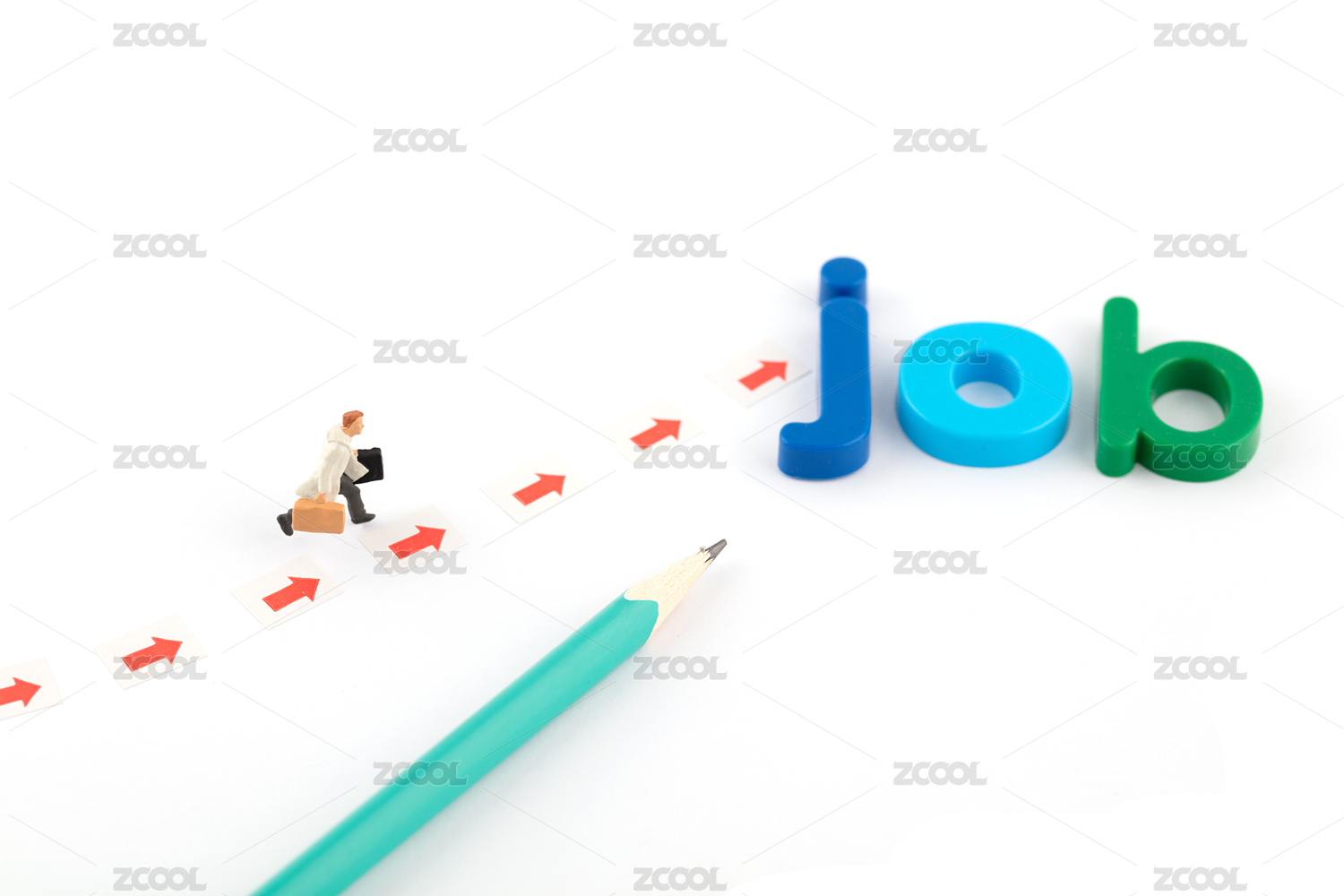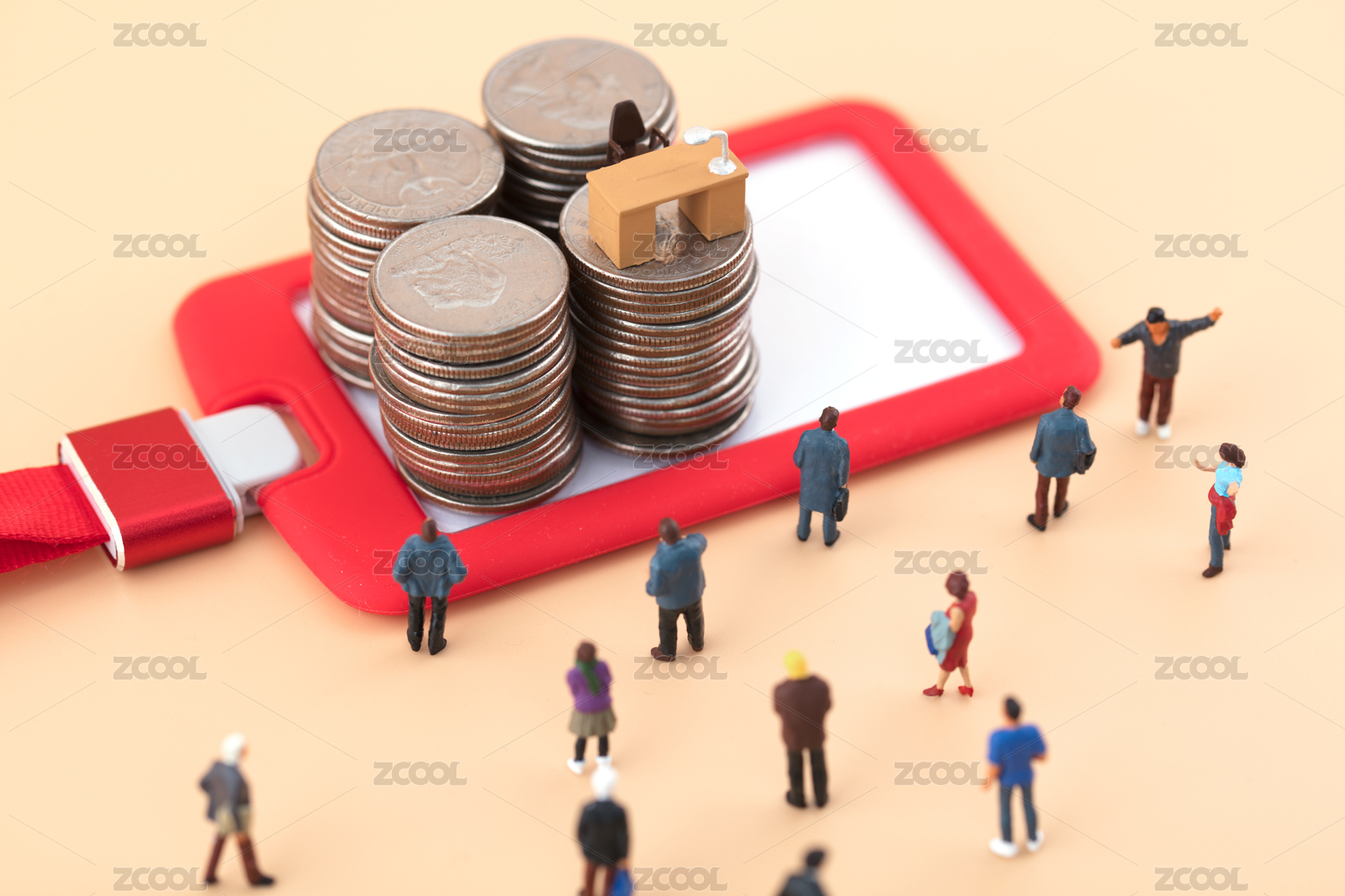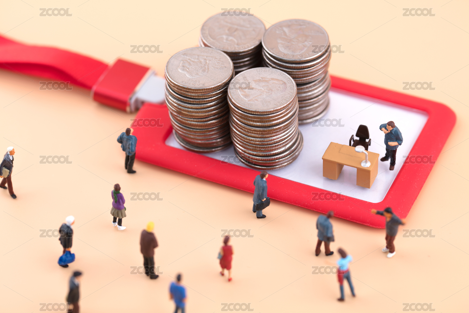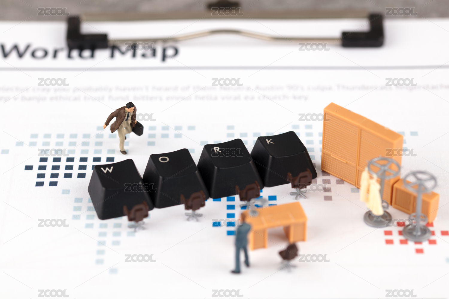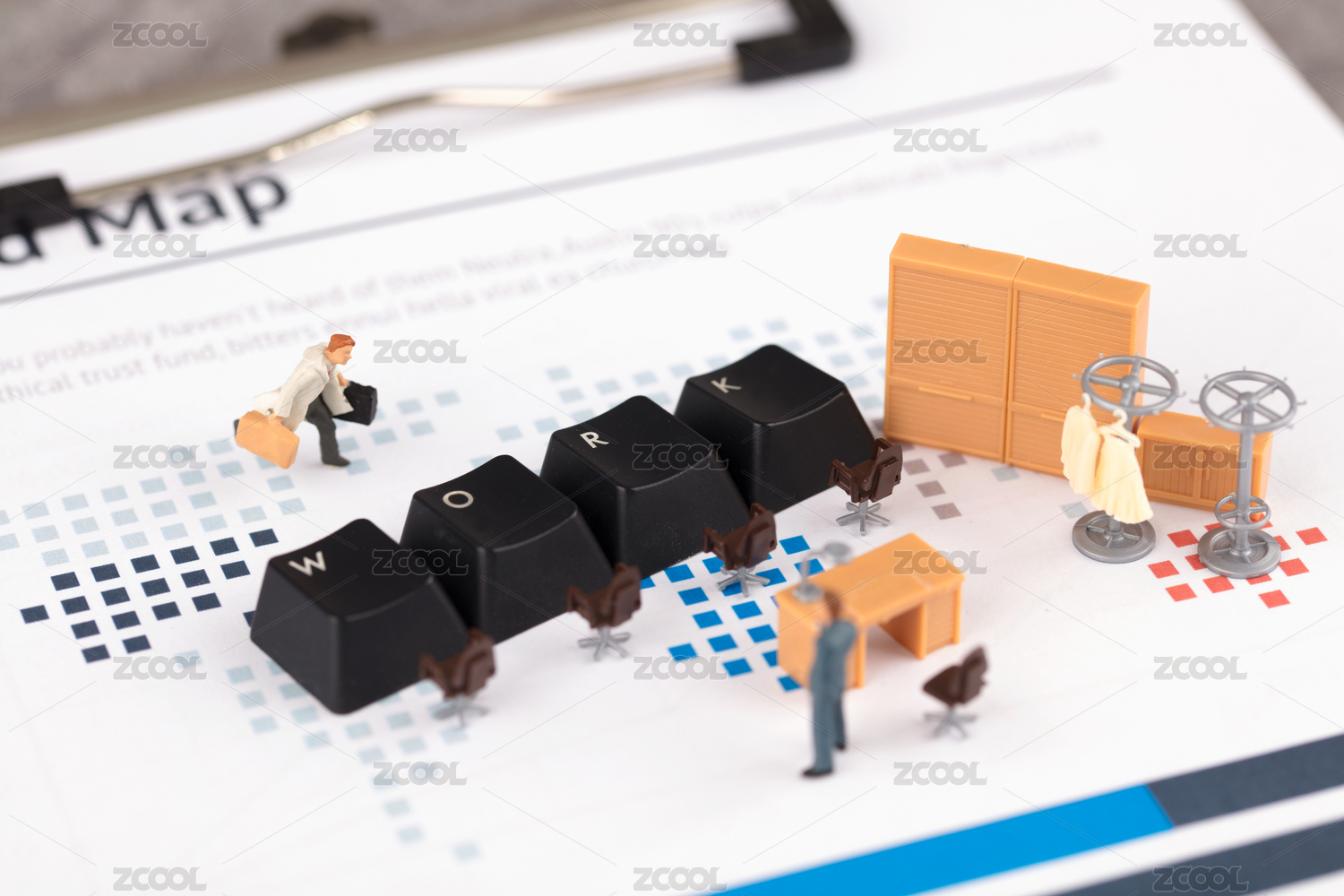 黃色臺(tái)燈下的辦工作和求職的人群微縮創(chuàng)意圖