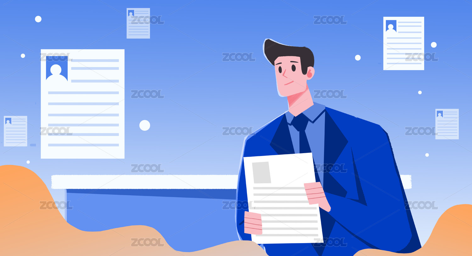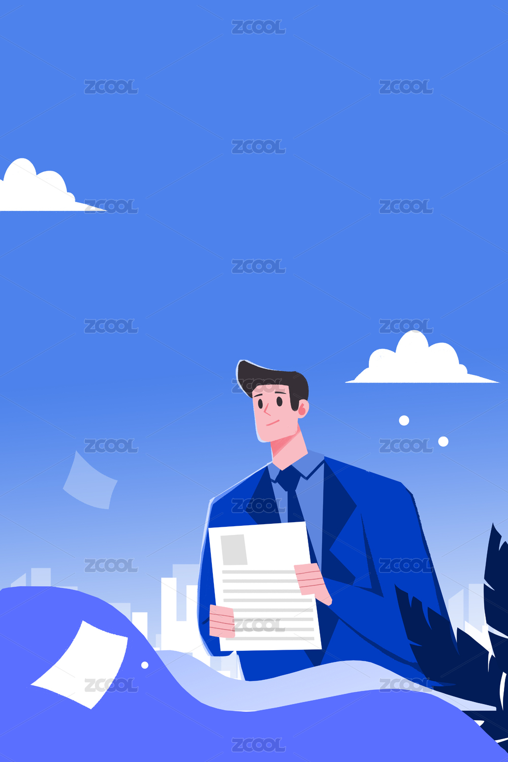 大學(xué)生畢業(yè)求職找工作面試應(yīng)聘扁平藍(lán)色海報(bào)