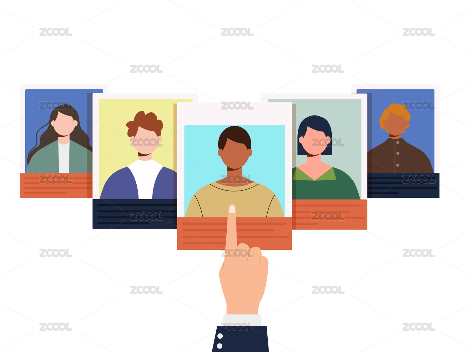 商務(wù)男女信息數(shù)據(jù)查找招聘面試找工作矢量插畫