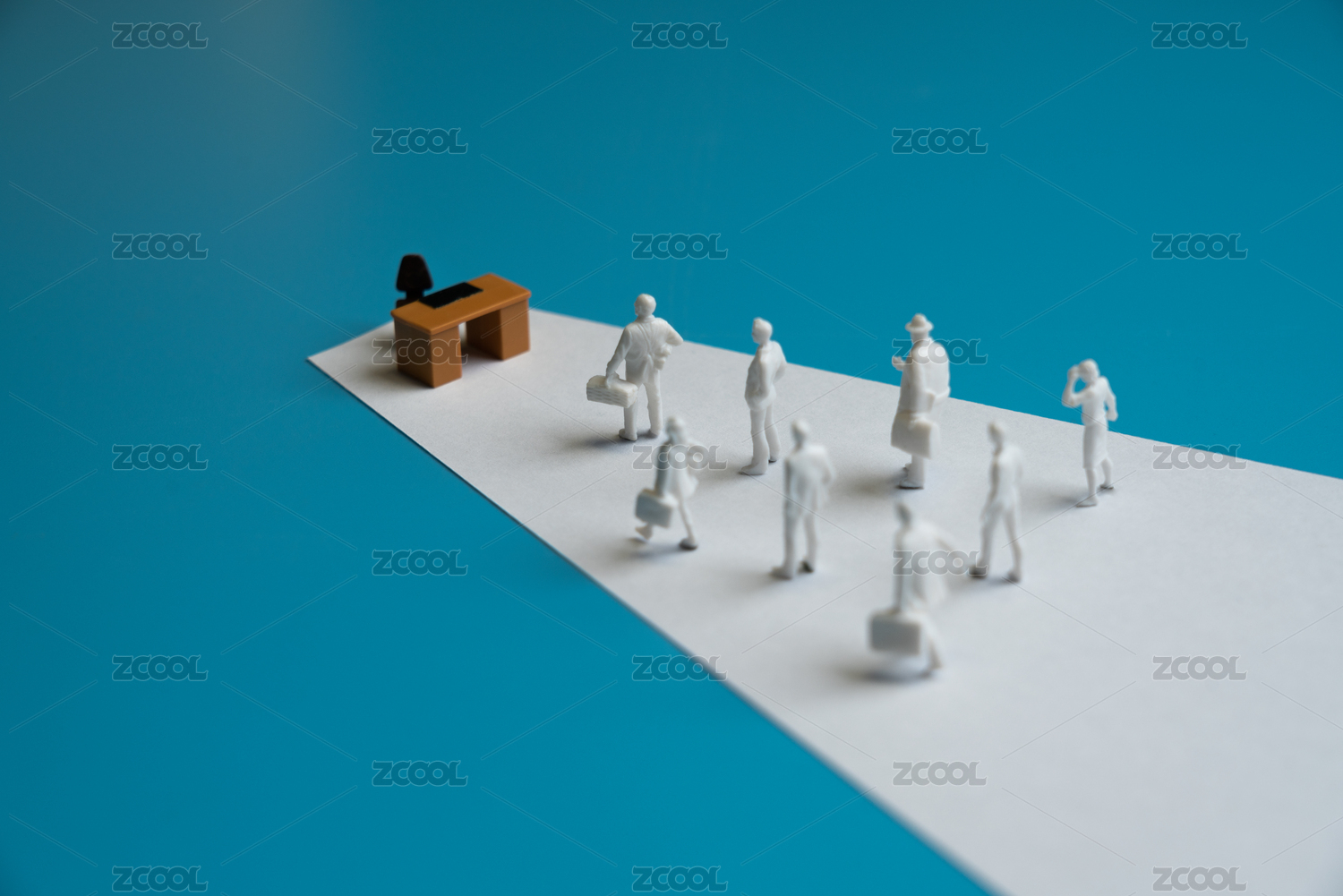 藍(lán)白的背景中一群準(zhǔn)備面試的人群微縮創(chuàng)意圖