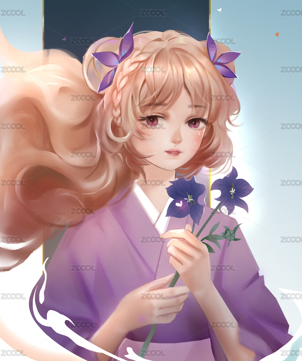 穿和服手拿桔?;ǖ慕鸢l(fā)少女