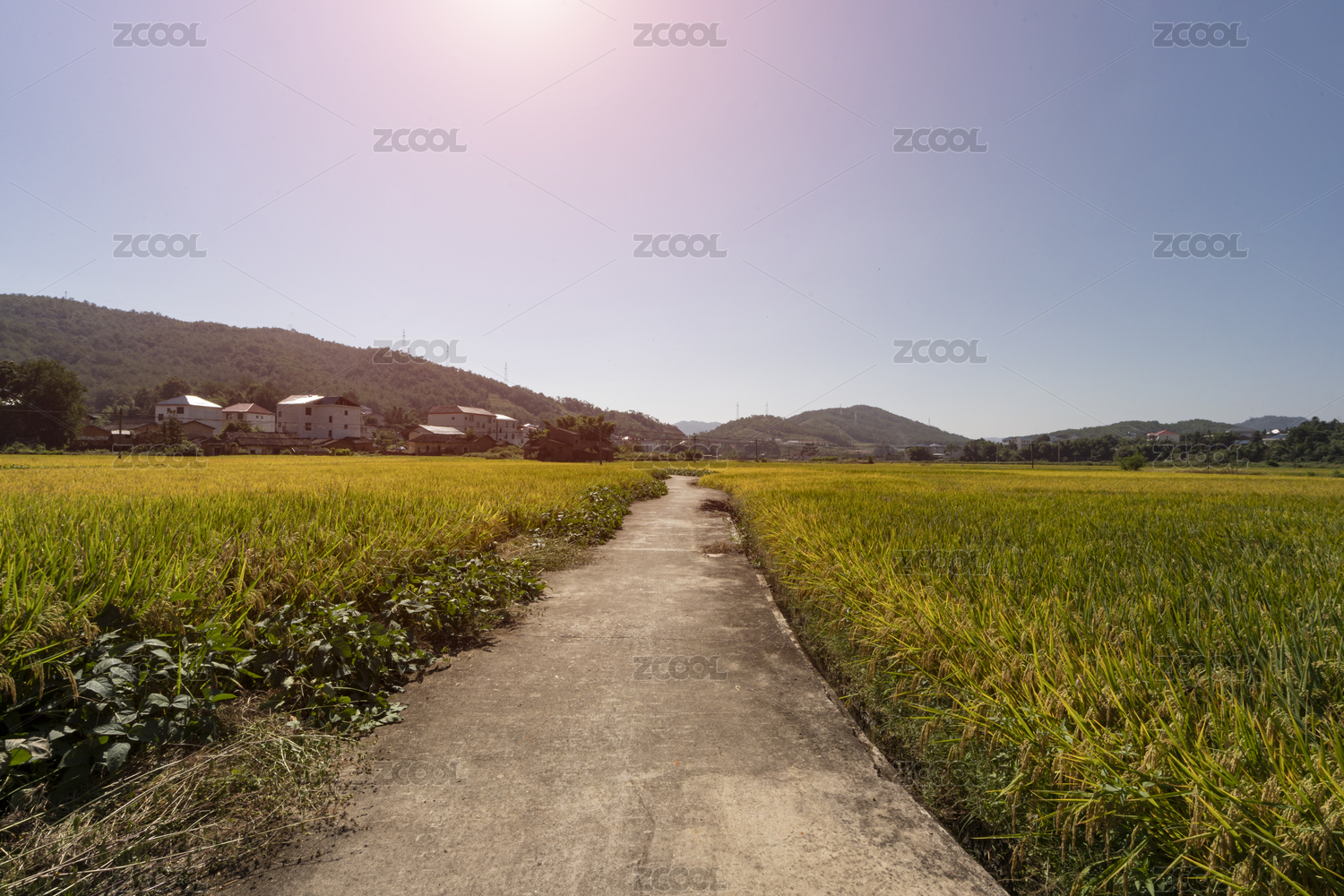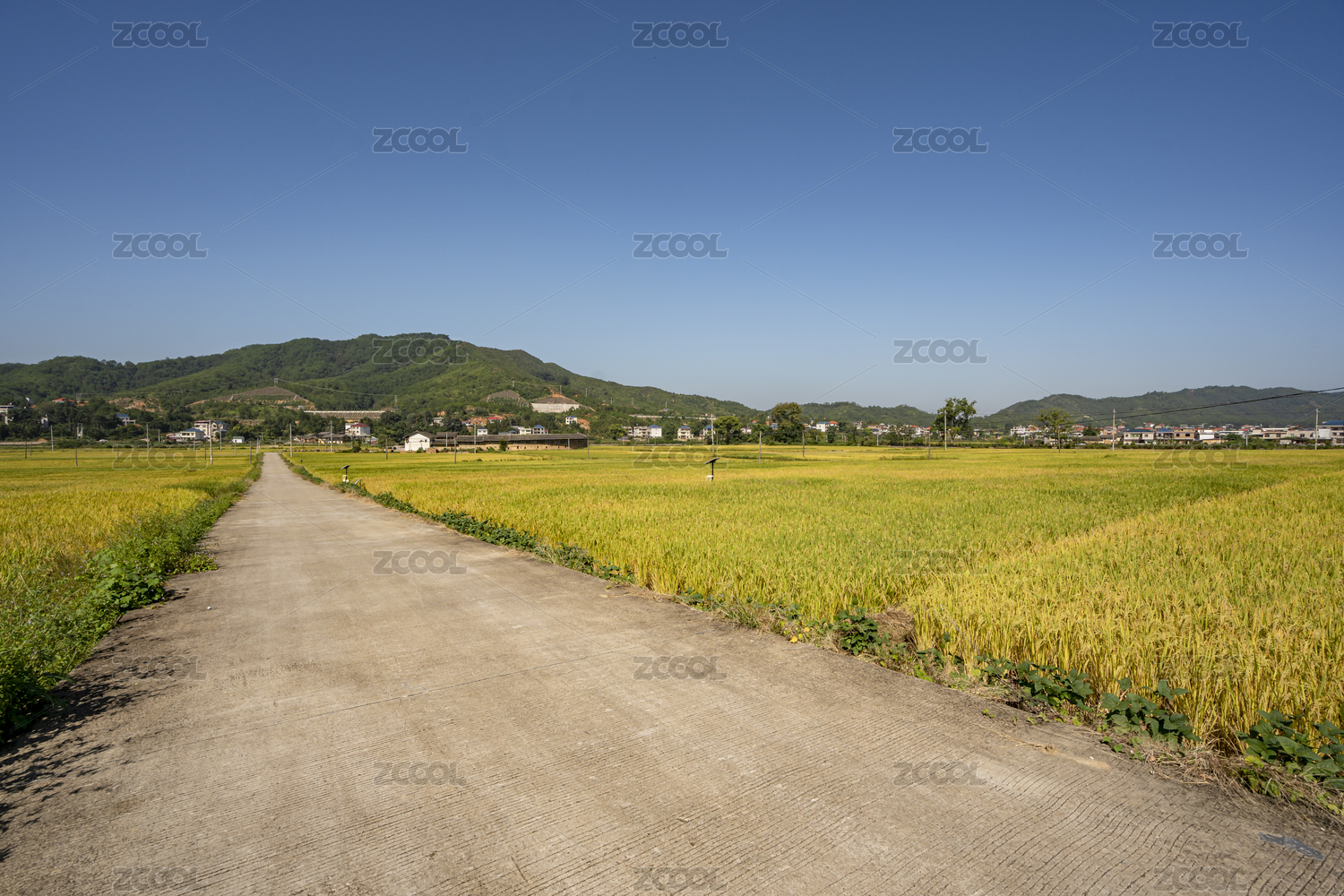 金秋水泥路兩旁金黃的稻田,中國福建