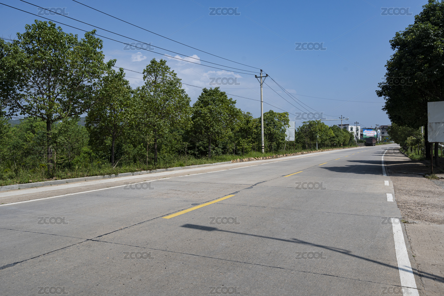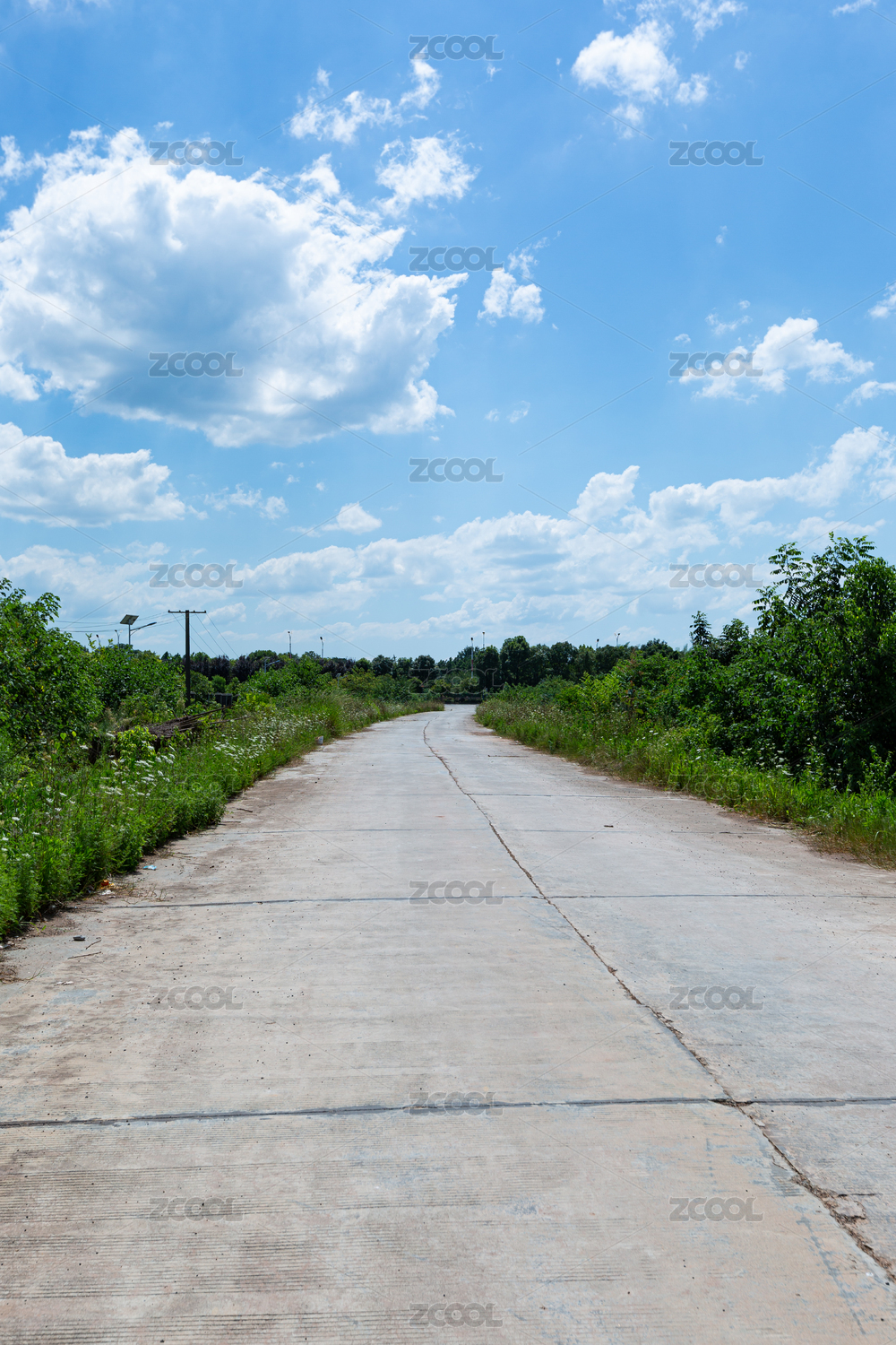 藍(lán)天白云下城郊一條筆直的水泥路