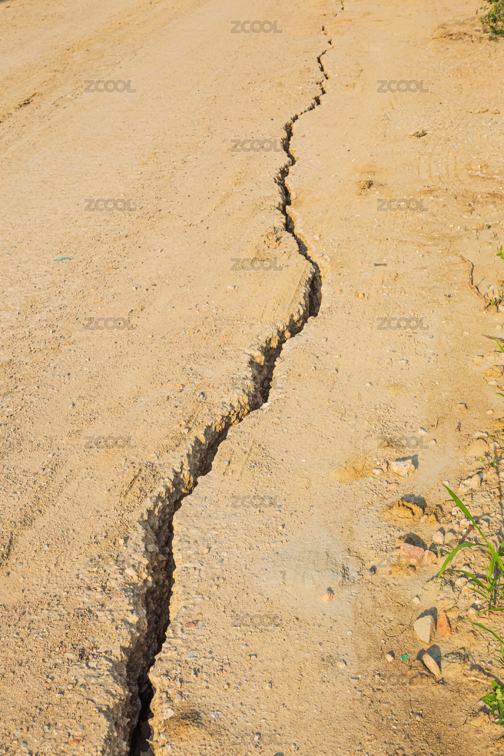 破損和開裂的水泥石子路地縫特寫
