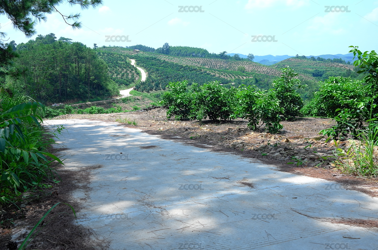 晴朗天空下水果基地里水泥道路