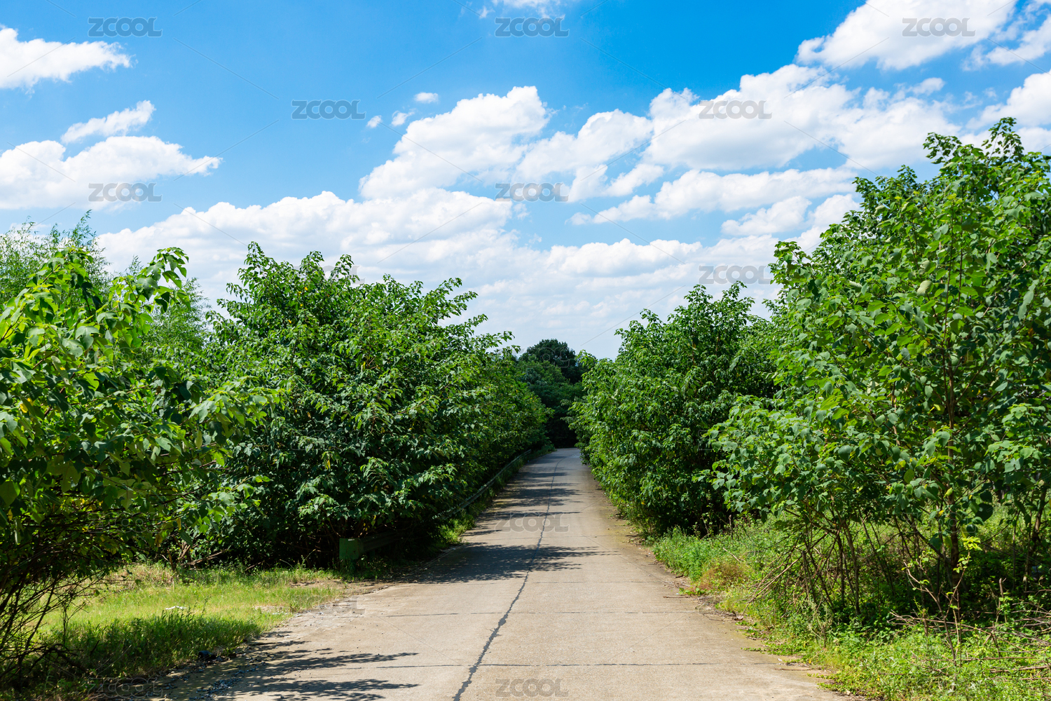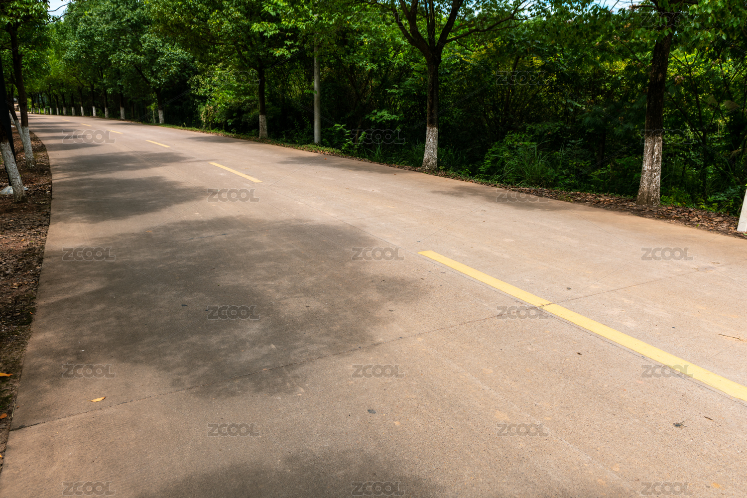 兩旁綠樹的水泥路