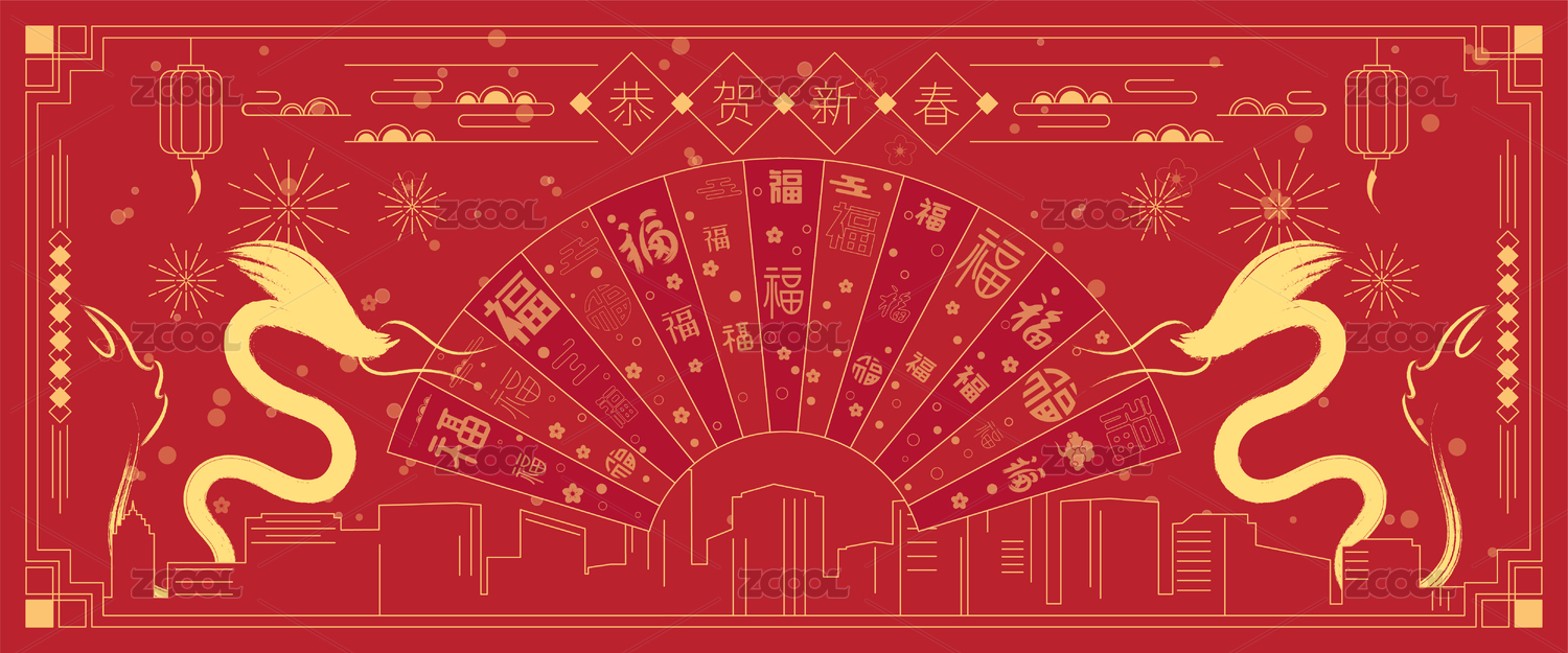龍年紅色扇子電商海報(bào)