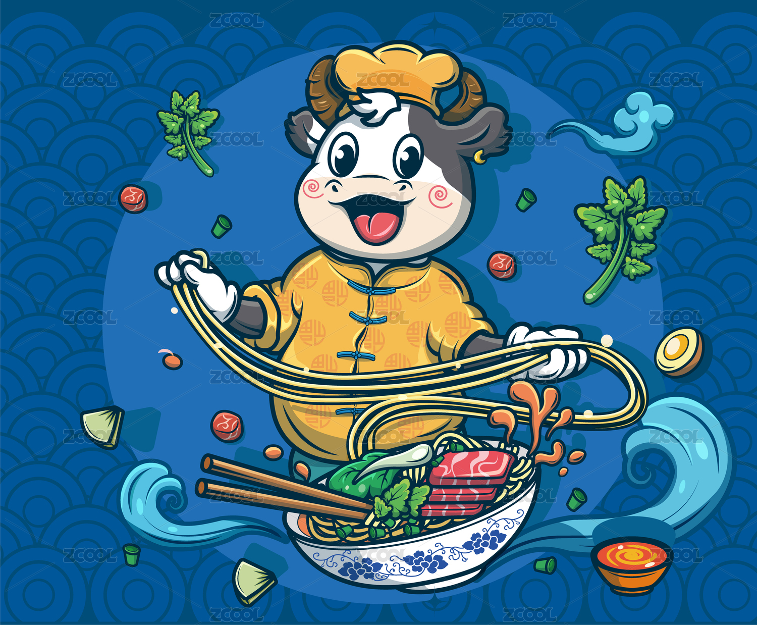 拉面的清真牛肉面電商海報(bào)創(chuàng)意插畫