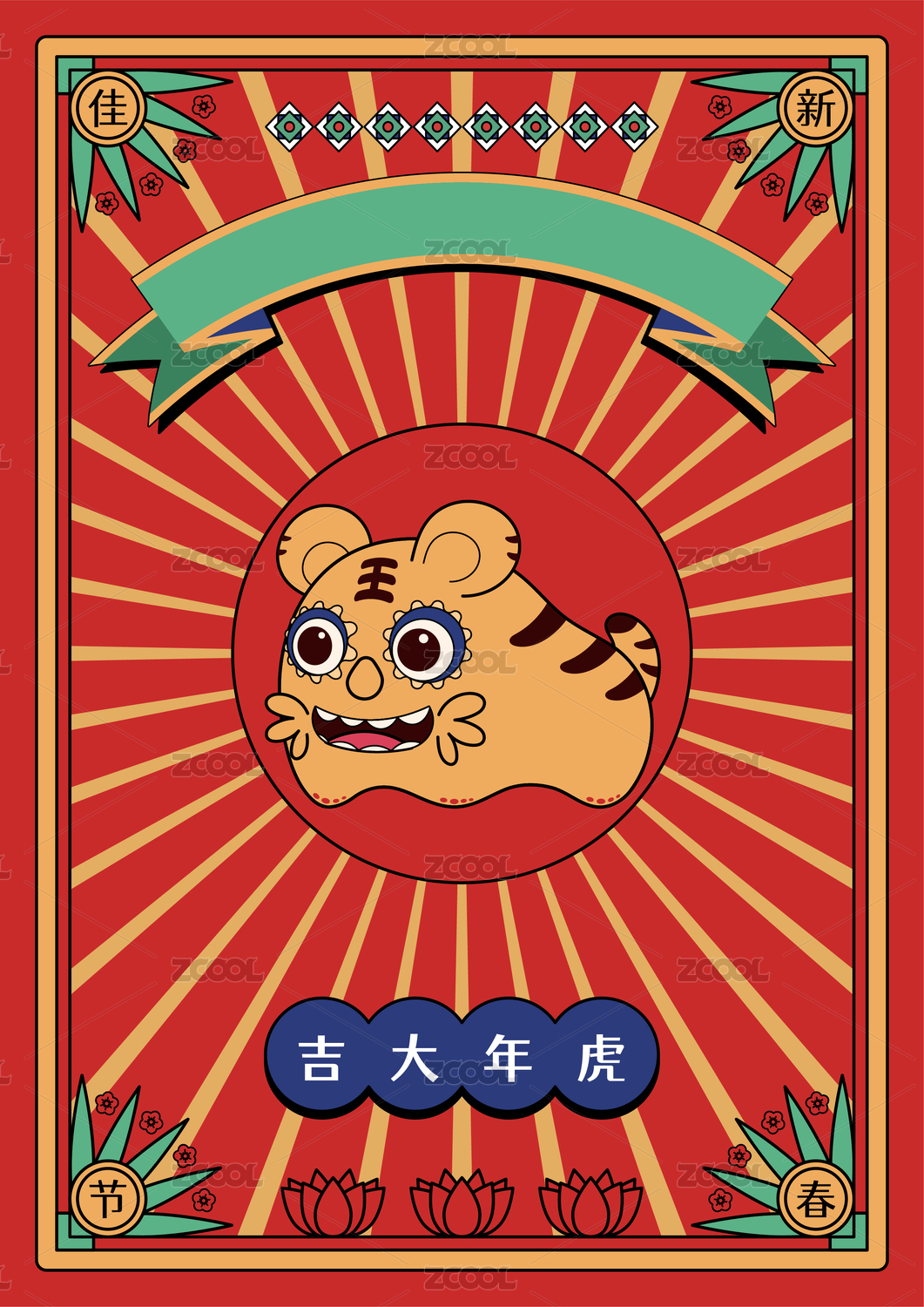 民國(guó)風(fēng)虎年卡通虎春節(jié)電商海報(bào)