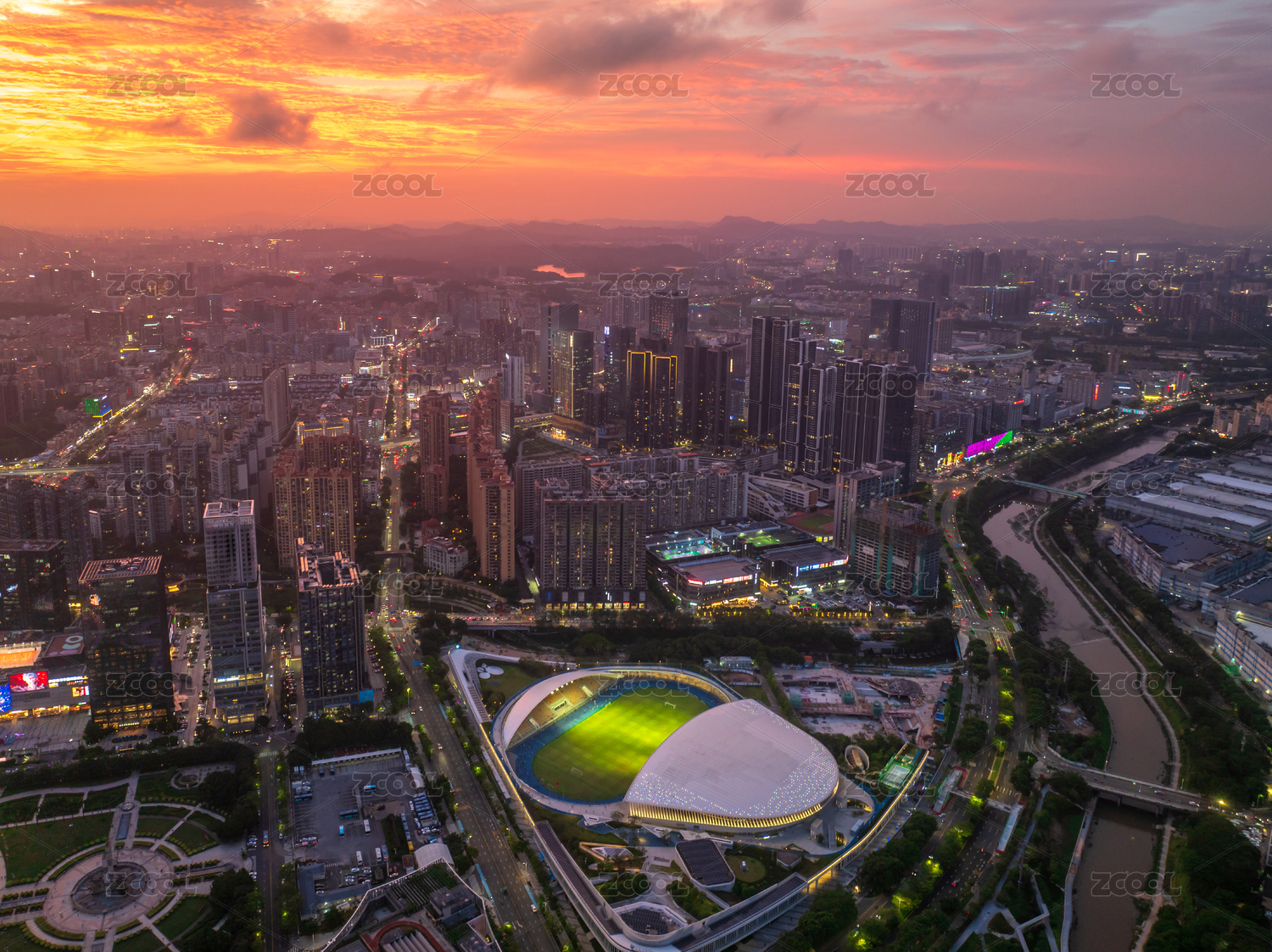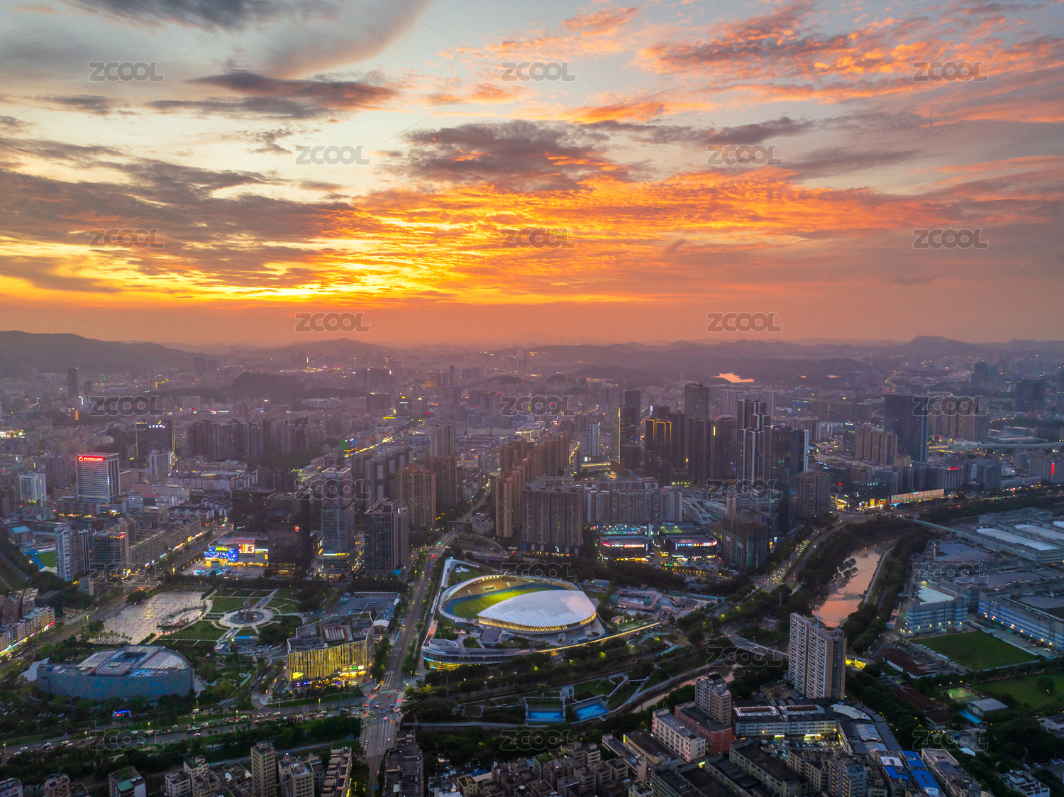 廣東省深圳龍華文體中心全景航拍