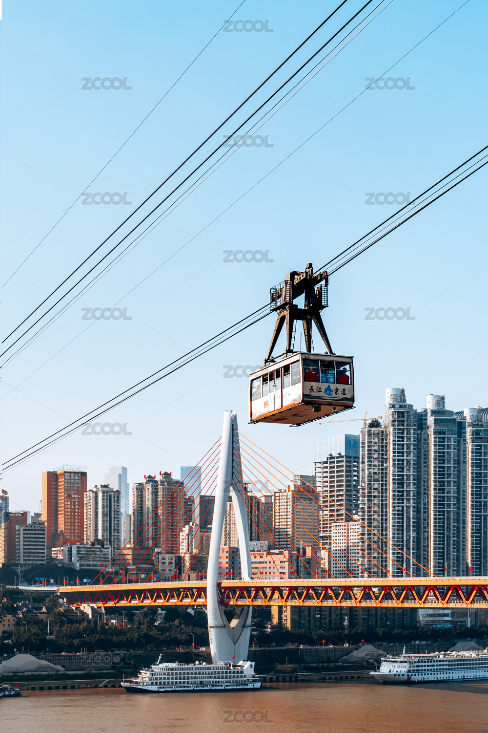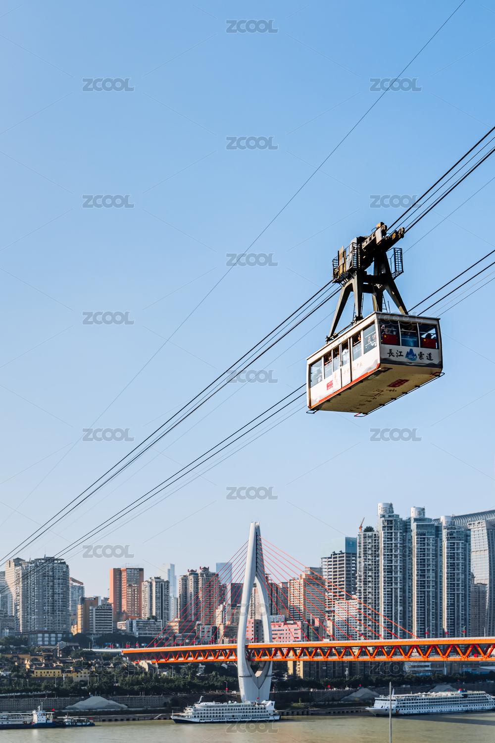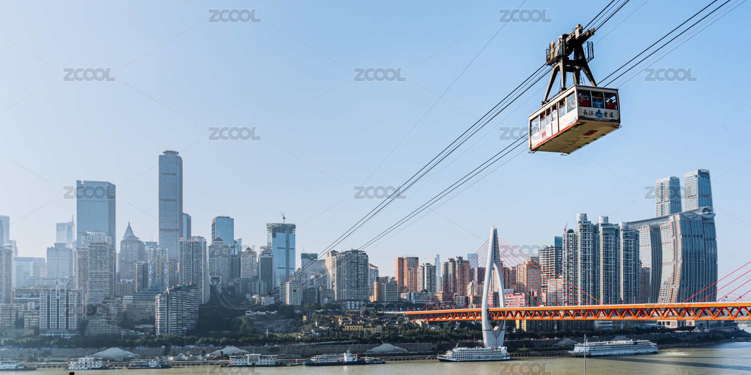 中國重慶城市長(zhǎng)江索道風(fēng)光