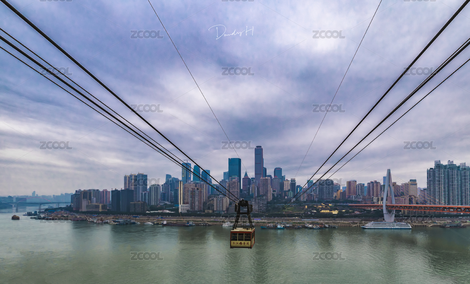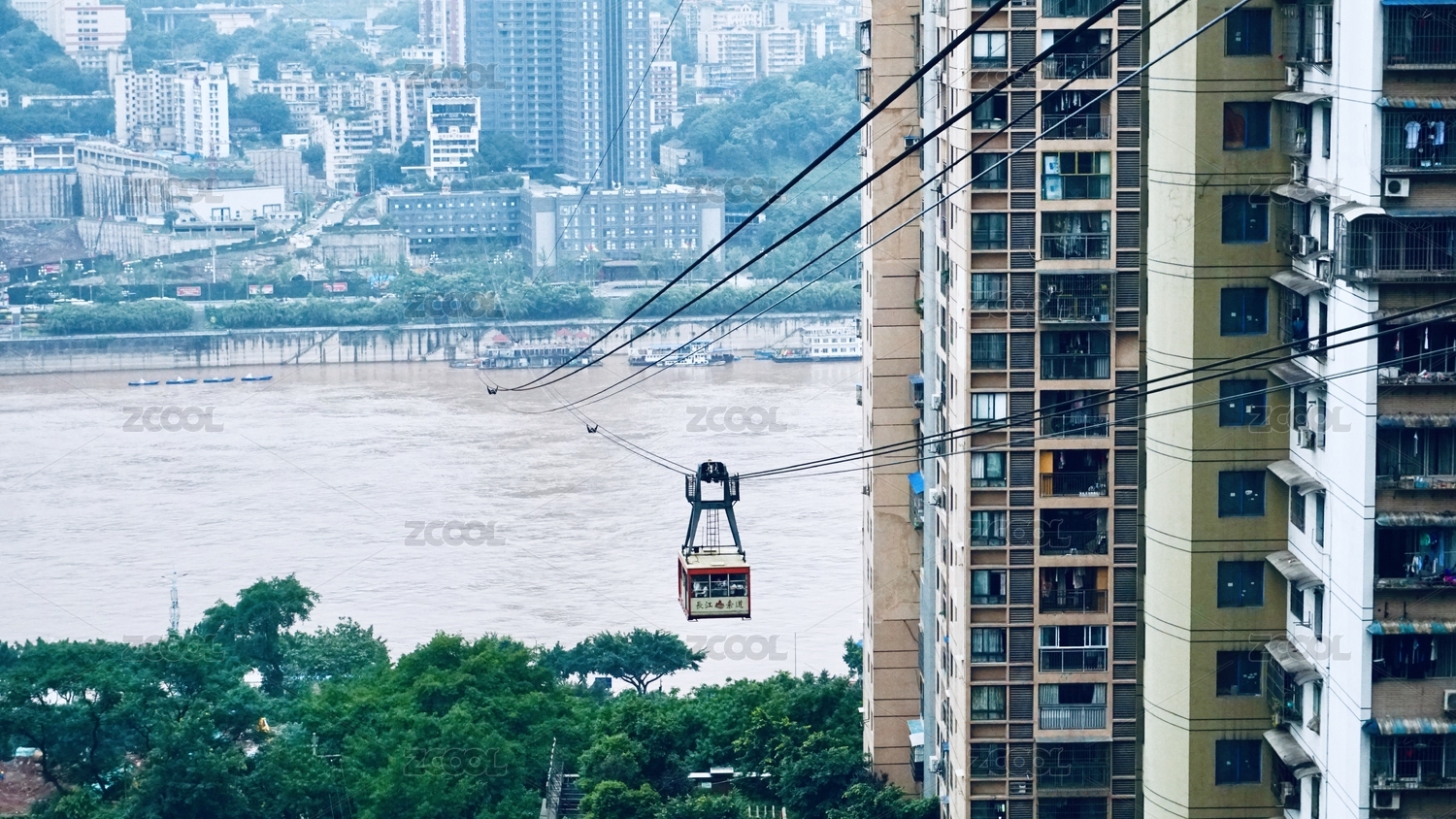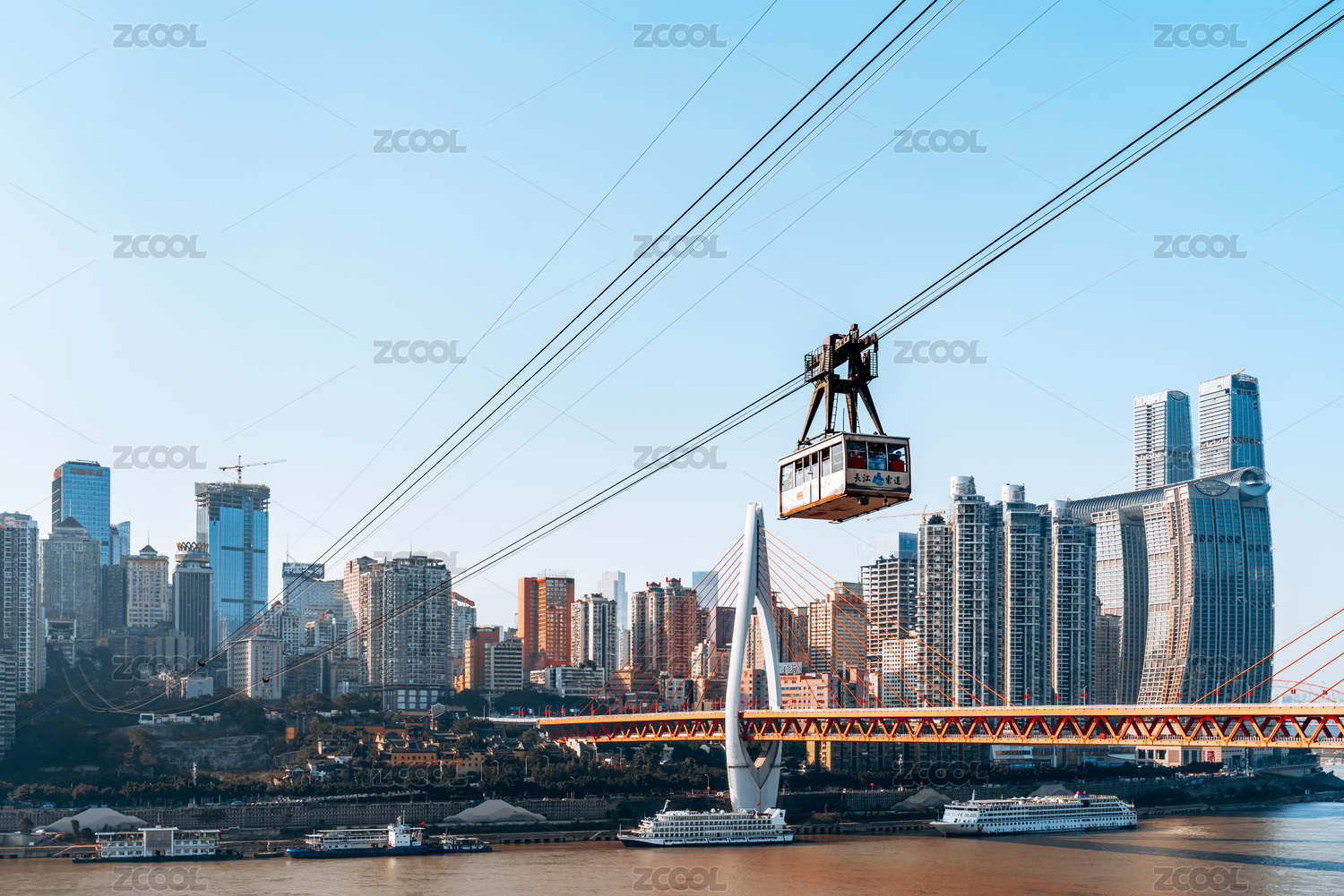 中國重慶城市長(zhǎng)江索道風(fēng)光