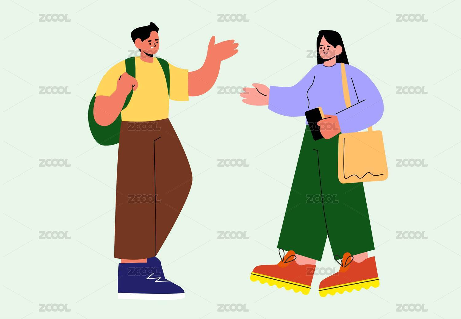 打招呼男女人物