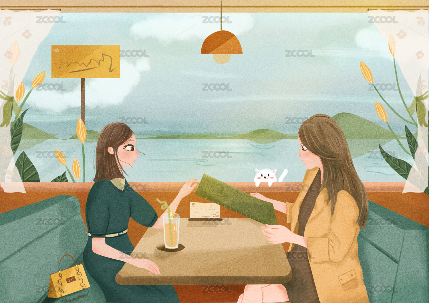 女人交流小清新插畫(huà)