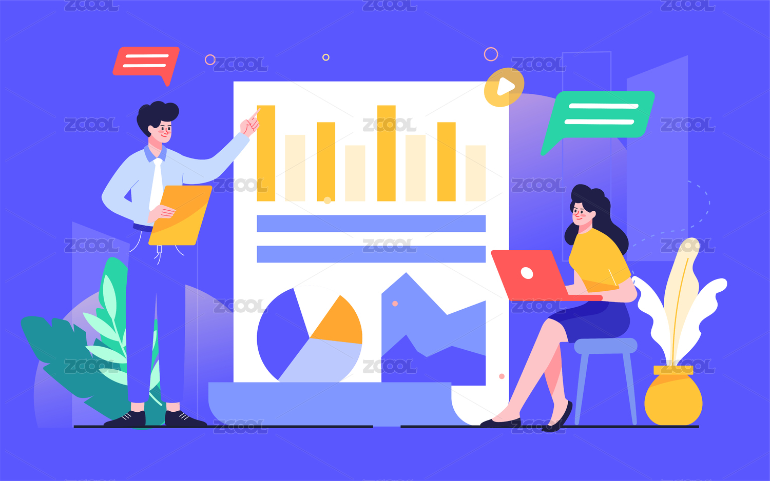辦公人物商談合作場(chǎng)景插畫(huà)