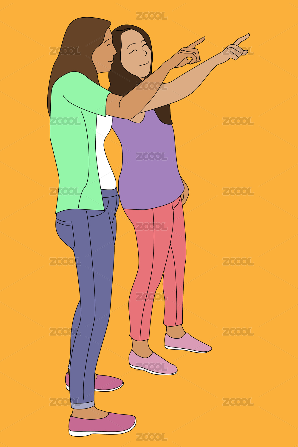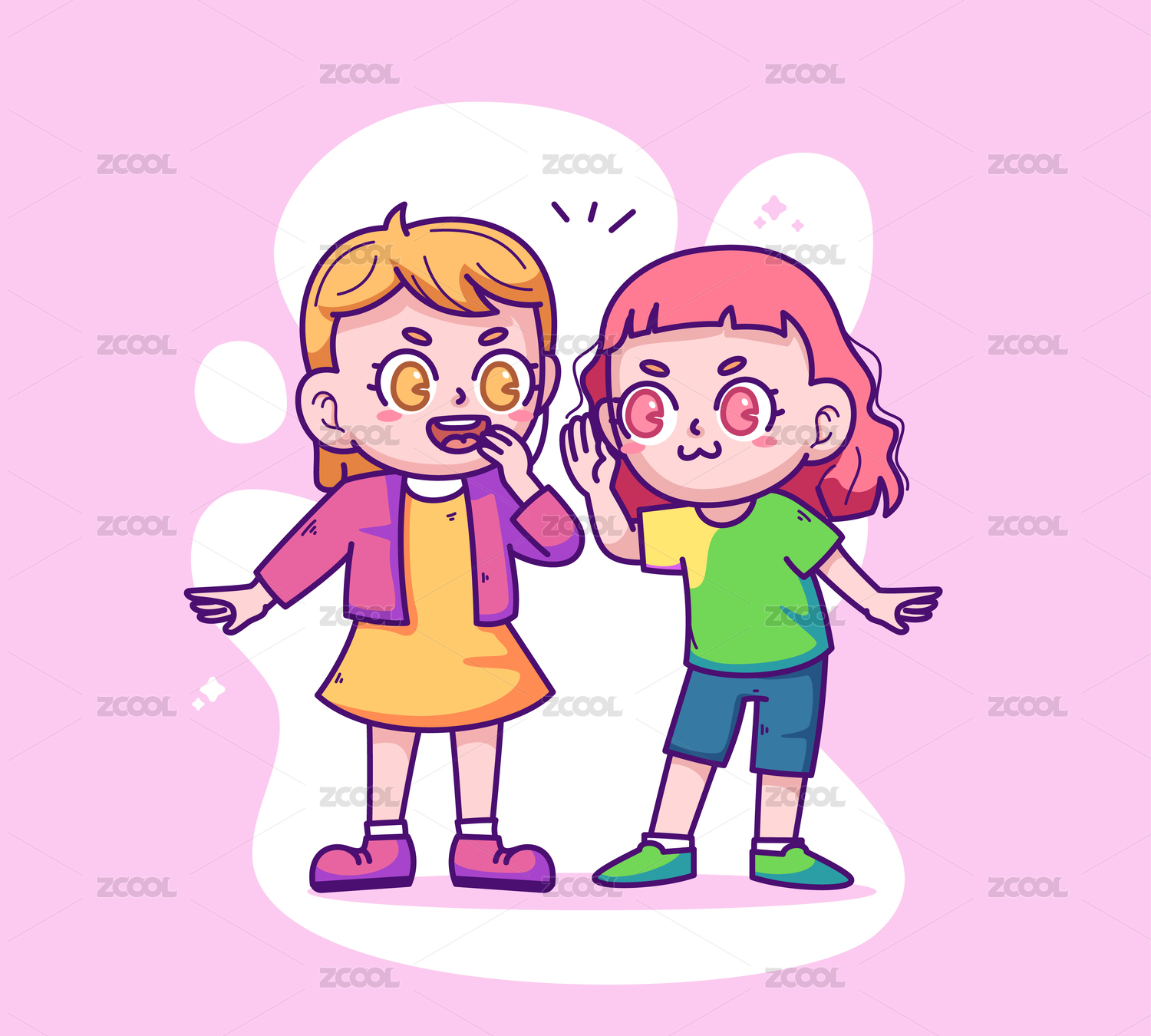 兩個(gè)小女孩正在交談矢量扁平插畫(huà)