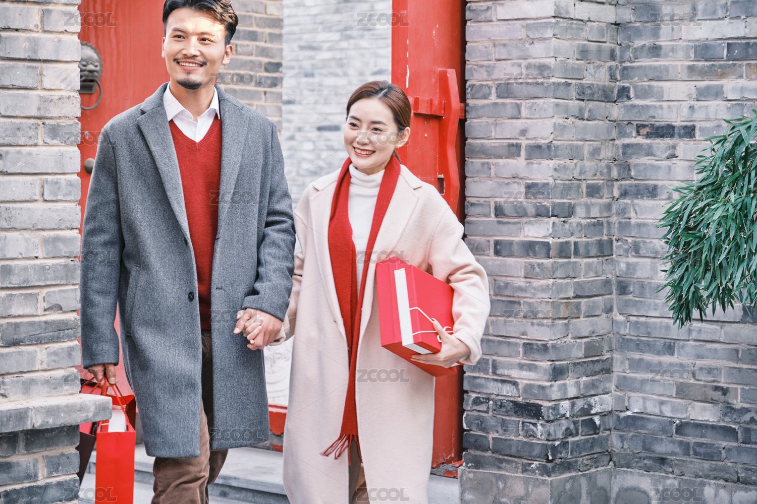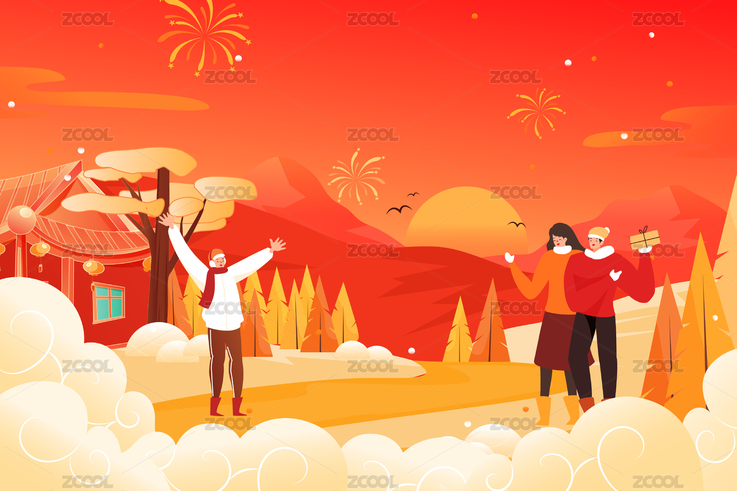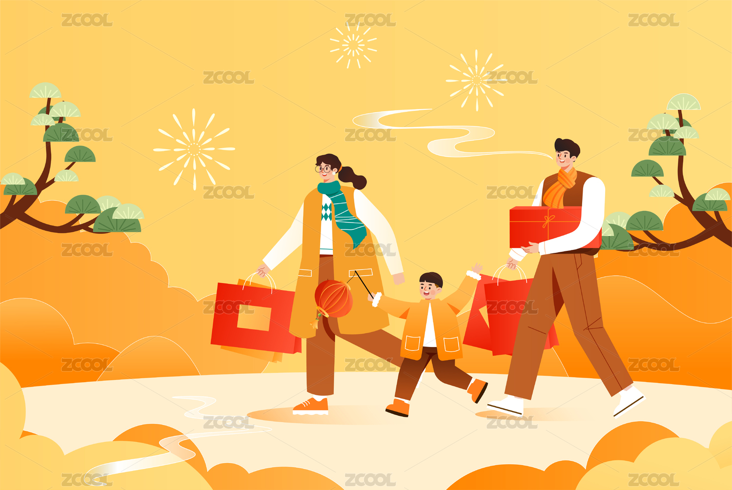 卡通新年回家過年出行禮包汽車活動矢量背景插畫