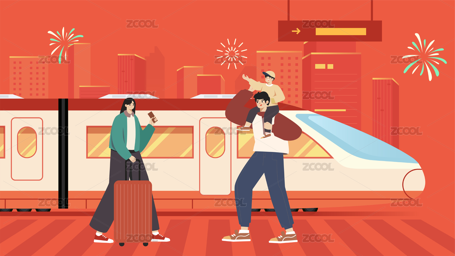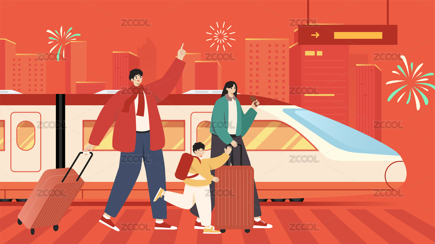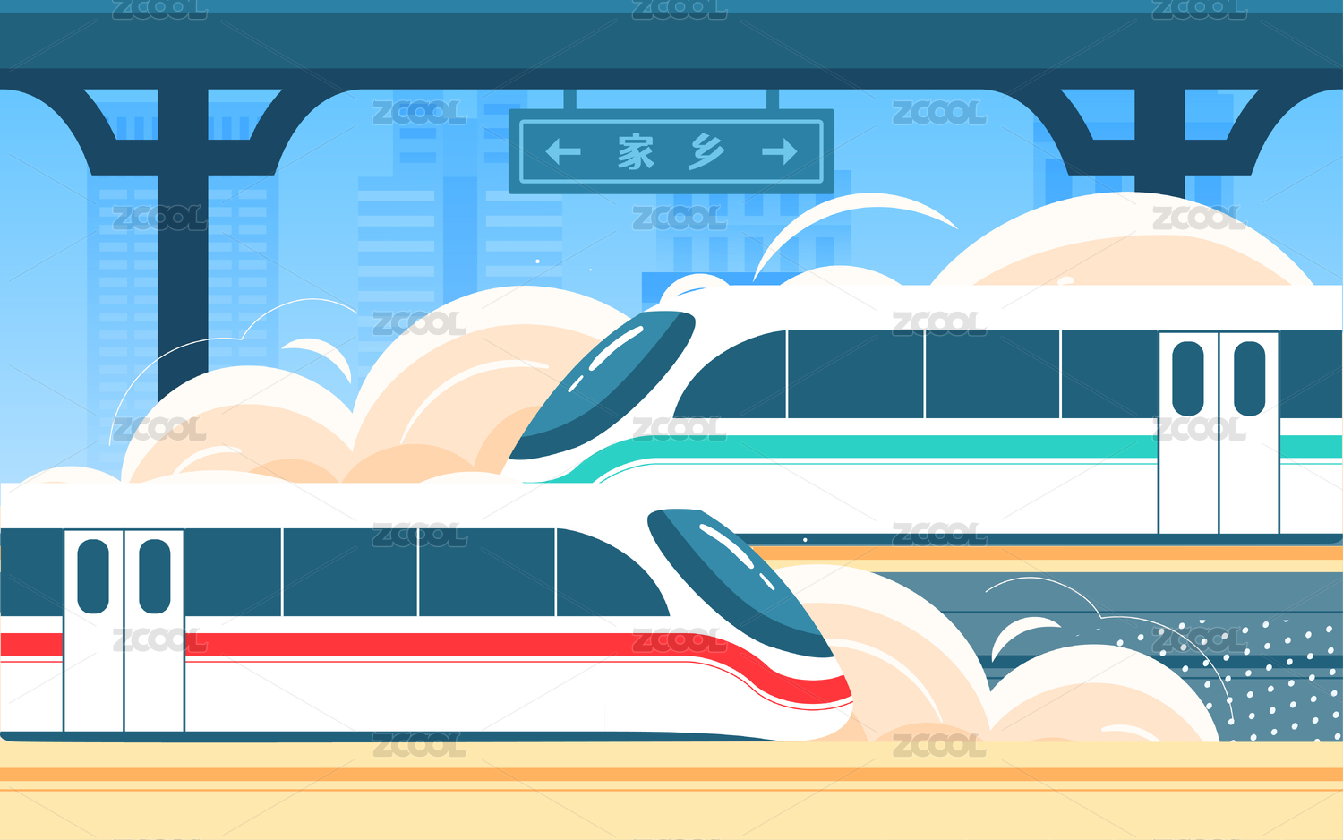 國慶假日出發(fā)旅游動車插畫高鐵春運回家海報