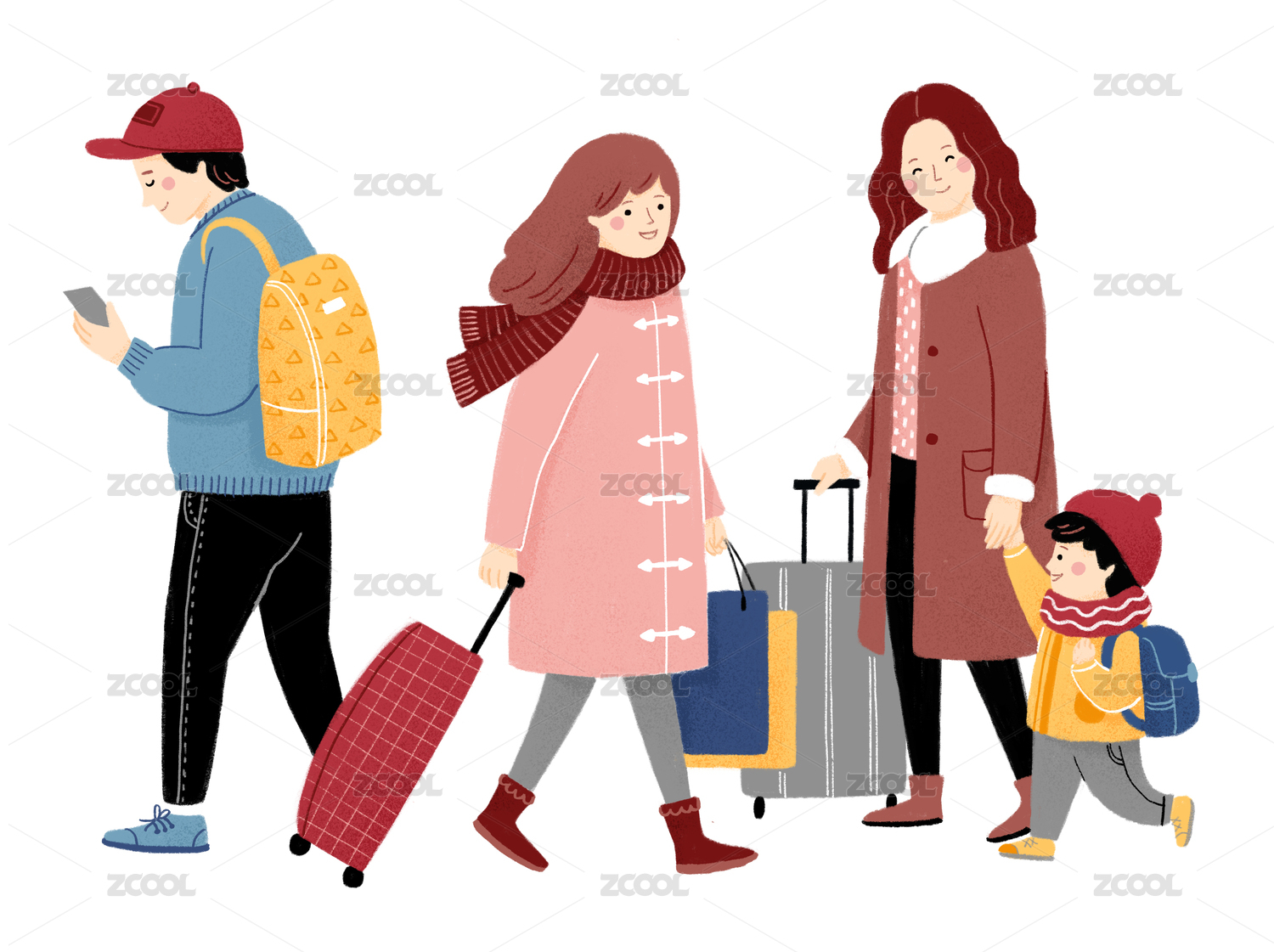 人物節(jié)假日旅行回家黃金周游客出游矢量插畫