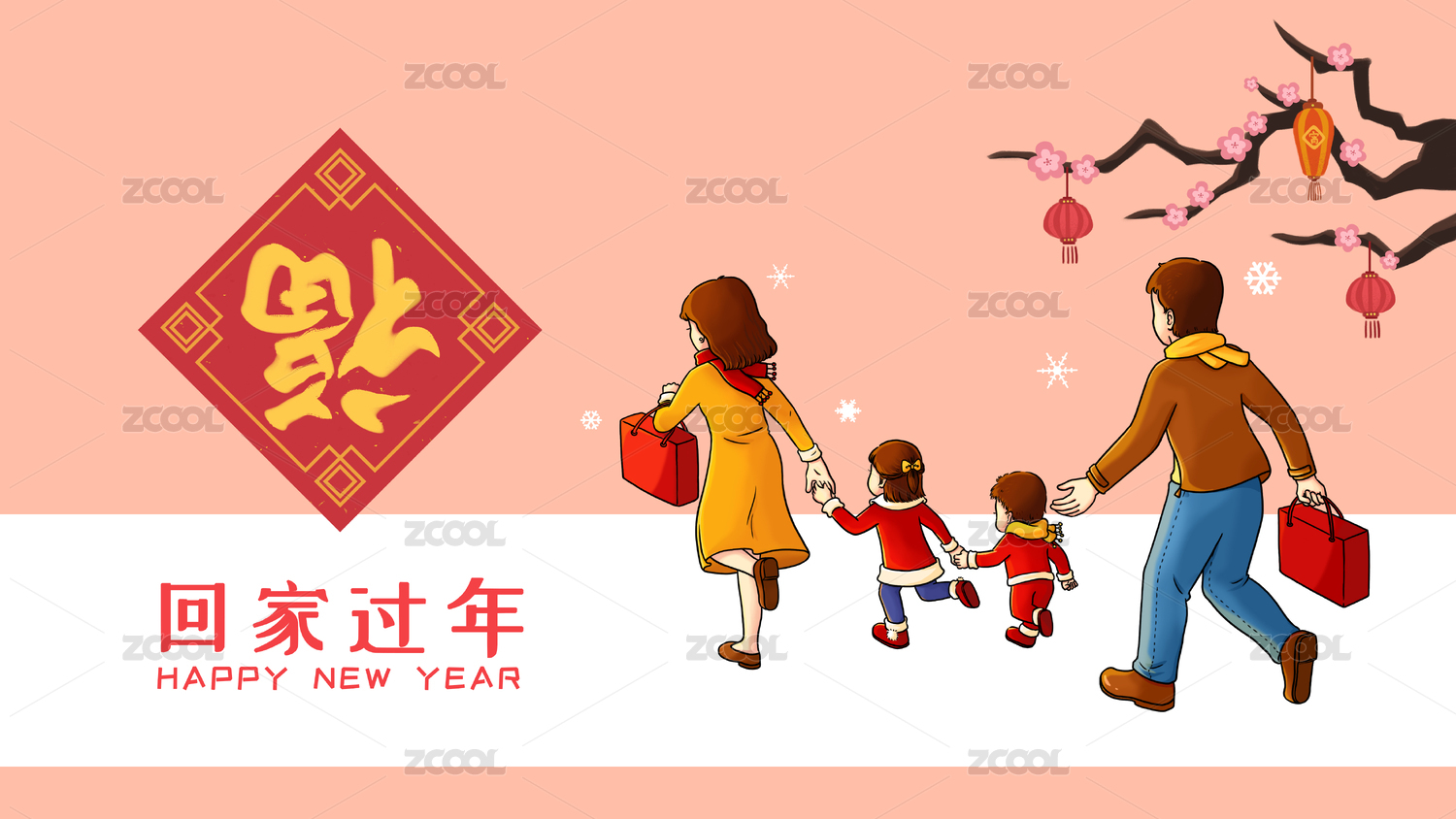 卡通2020鼠年回家過年春節(jié)團圓背景矢量插畫