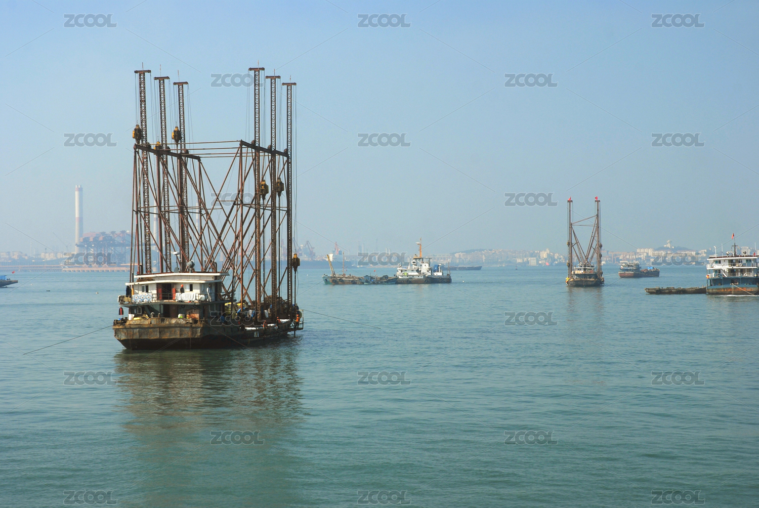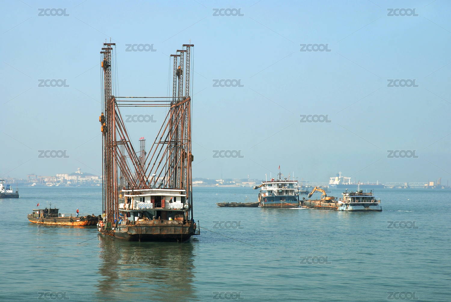 中國山東青島膠州灣水上工程施工船只