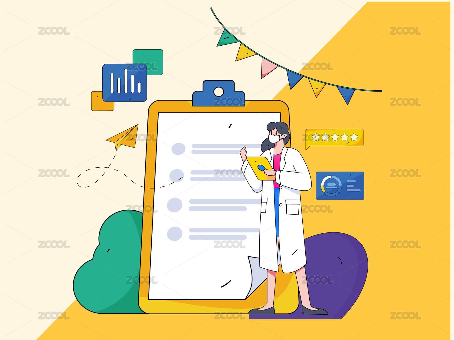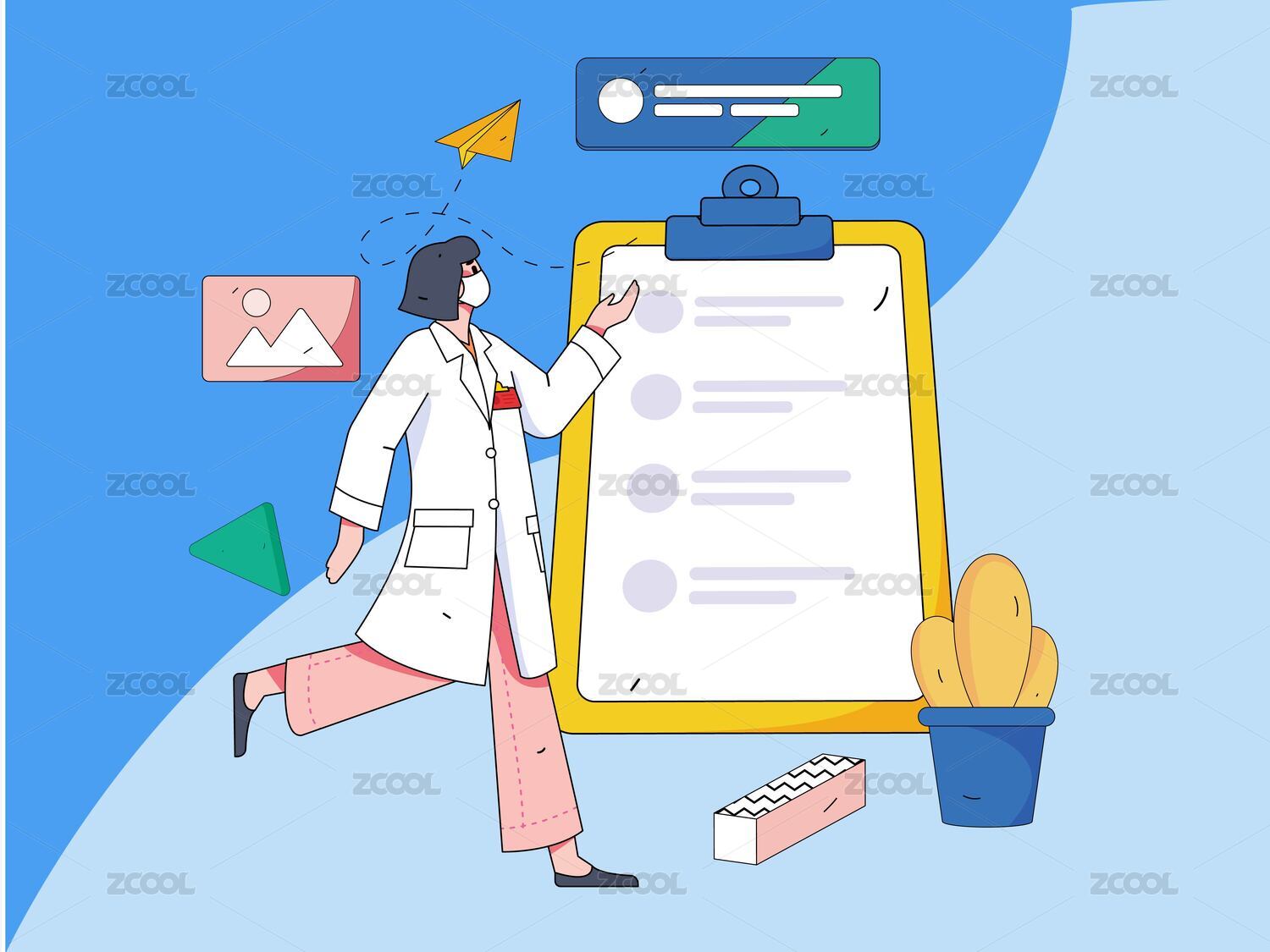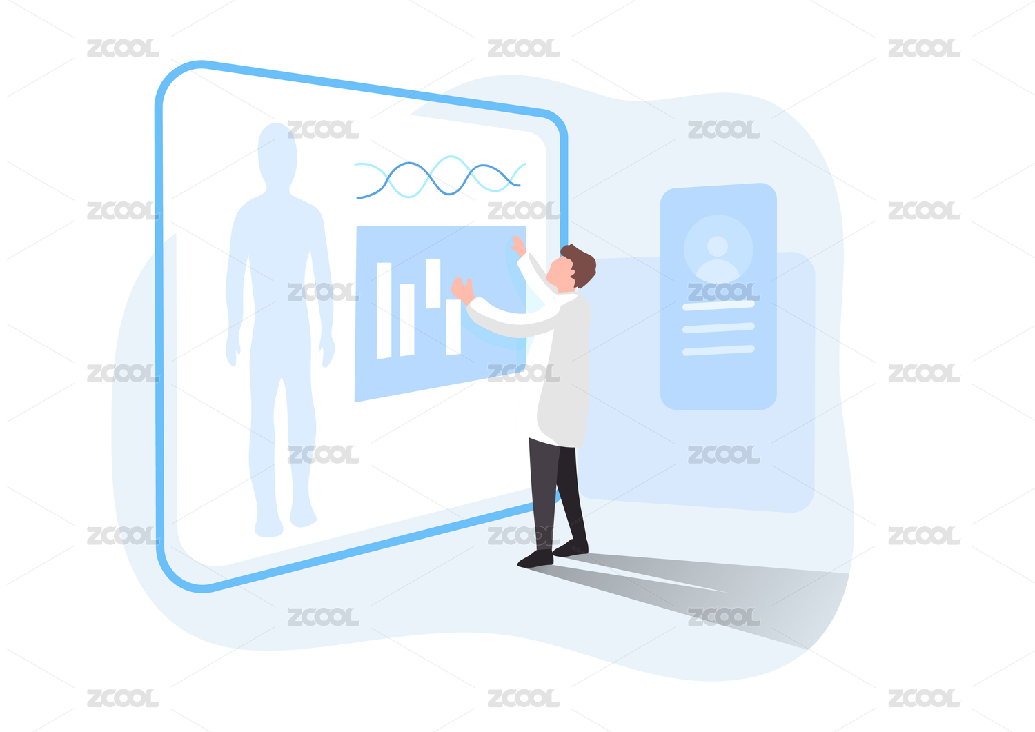匯報工作的女博士醫(yī)生扁平矢量插畫