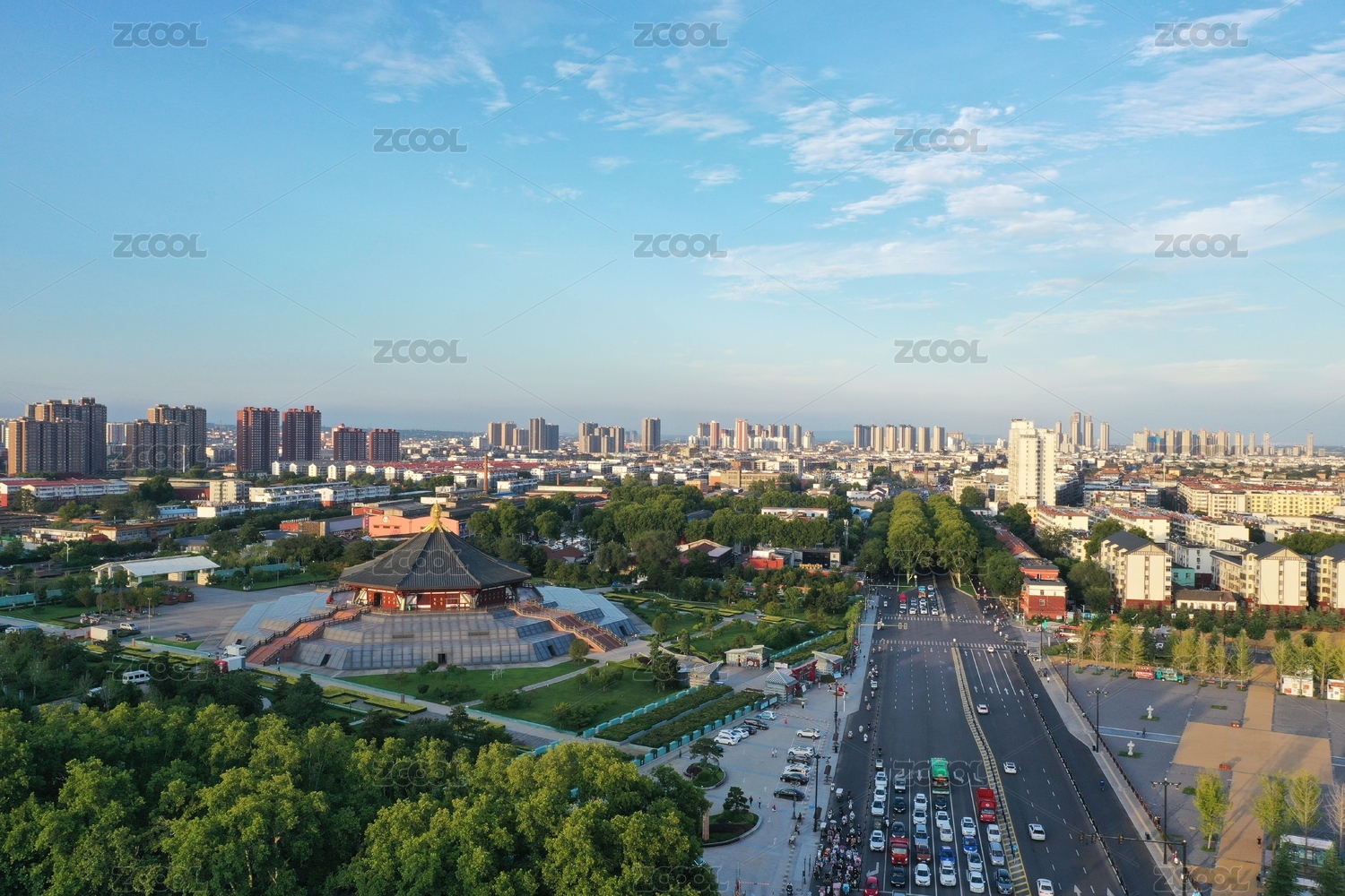 山西省大同市北魏明堂公園高視角航拍風(fēng)光