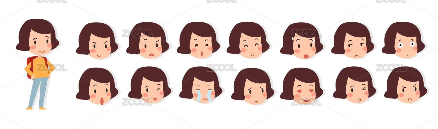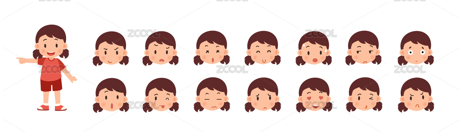 女孩可愛(ài)的女孩卡通表情矢量圖