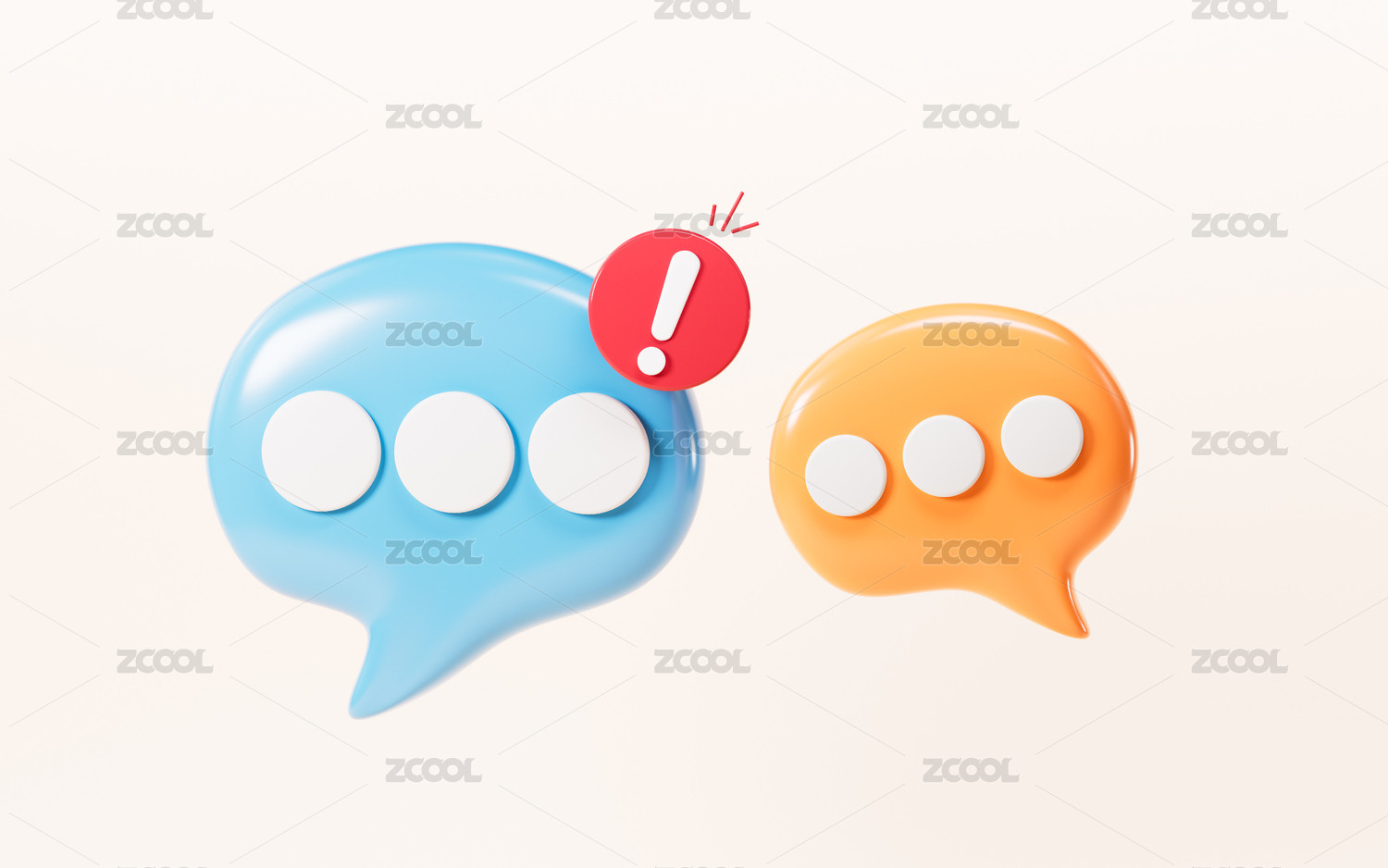 卡通表情包信息消息白圖標(biāo)3D渲染