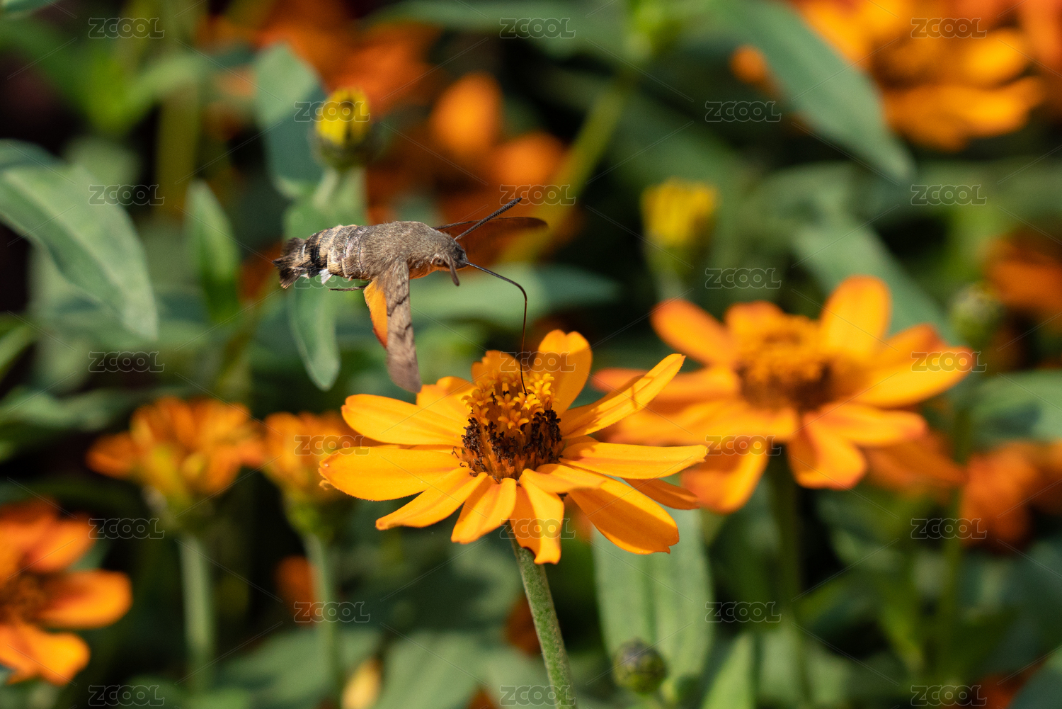正在吸食黑心菊花蜜的蜂鳥鷹蛾