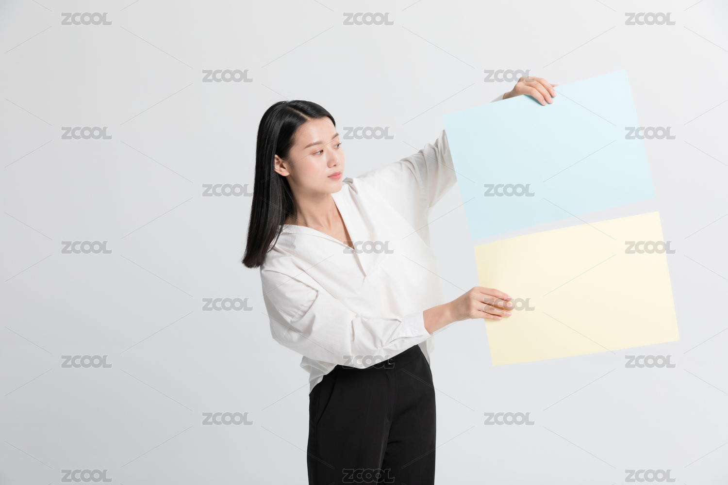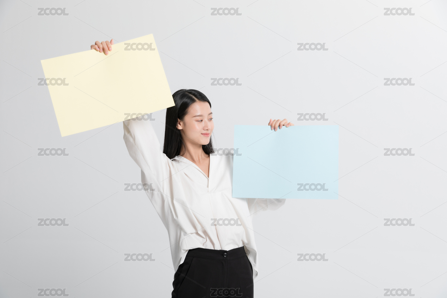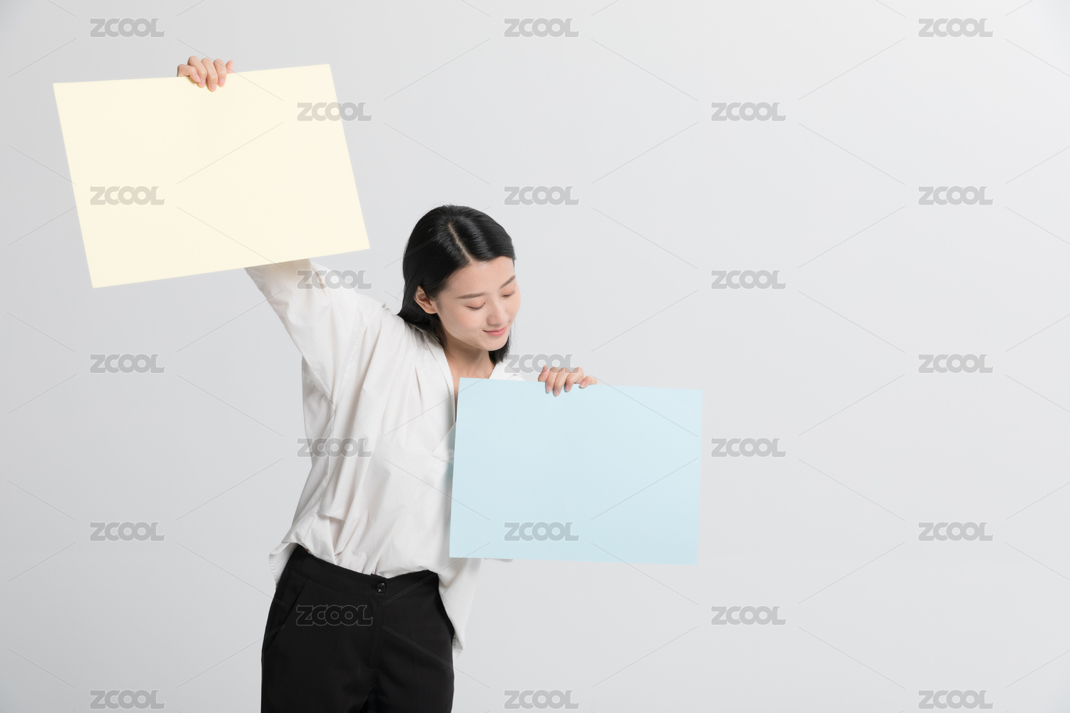 職場人士雙手拿展示牌