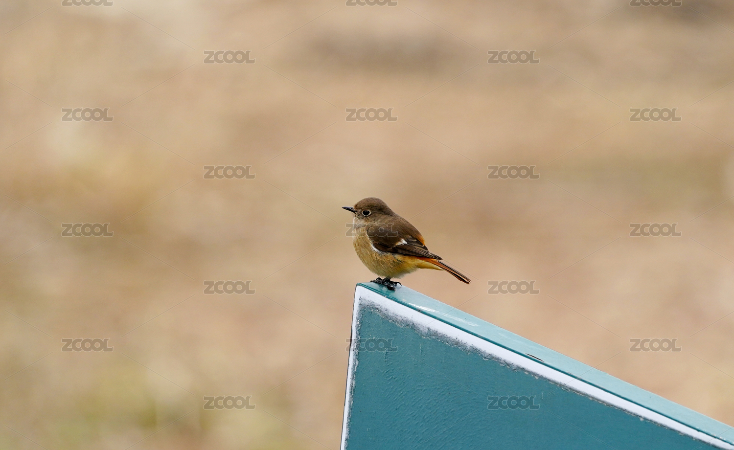 綠色標牌上的一只北紅尾鴝