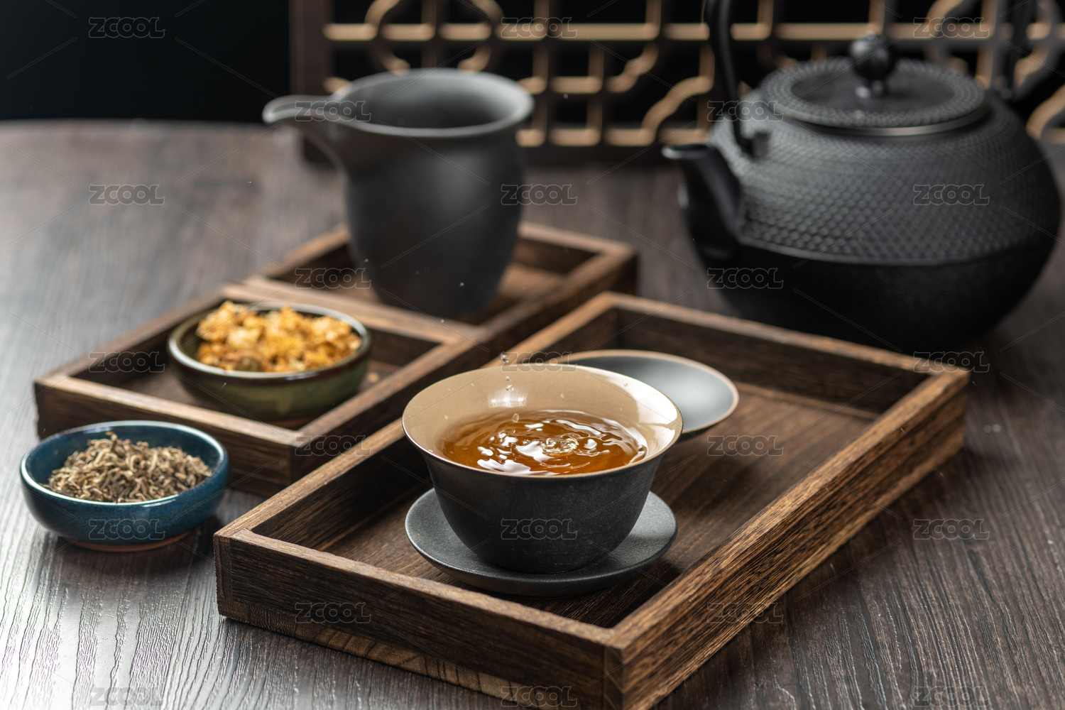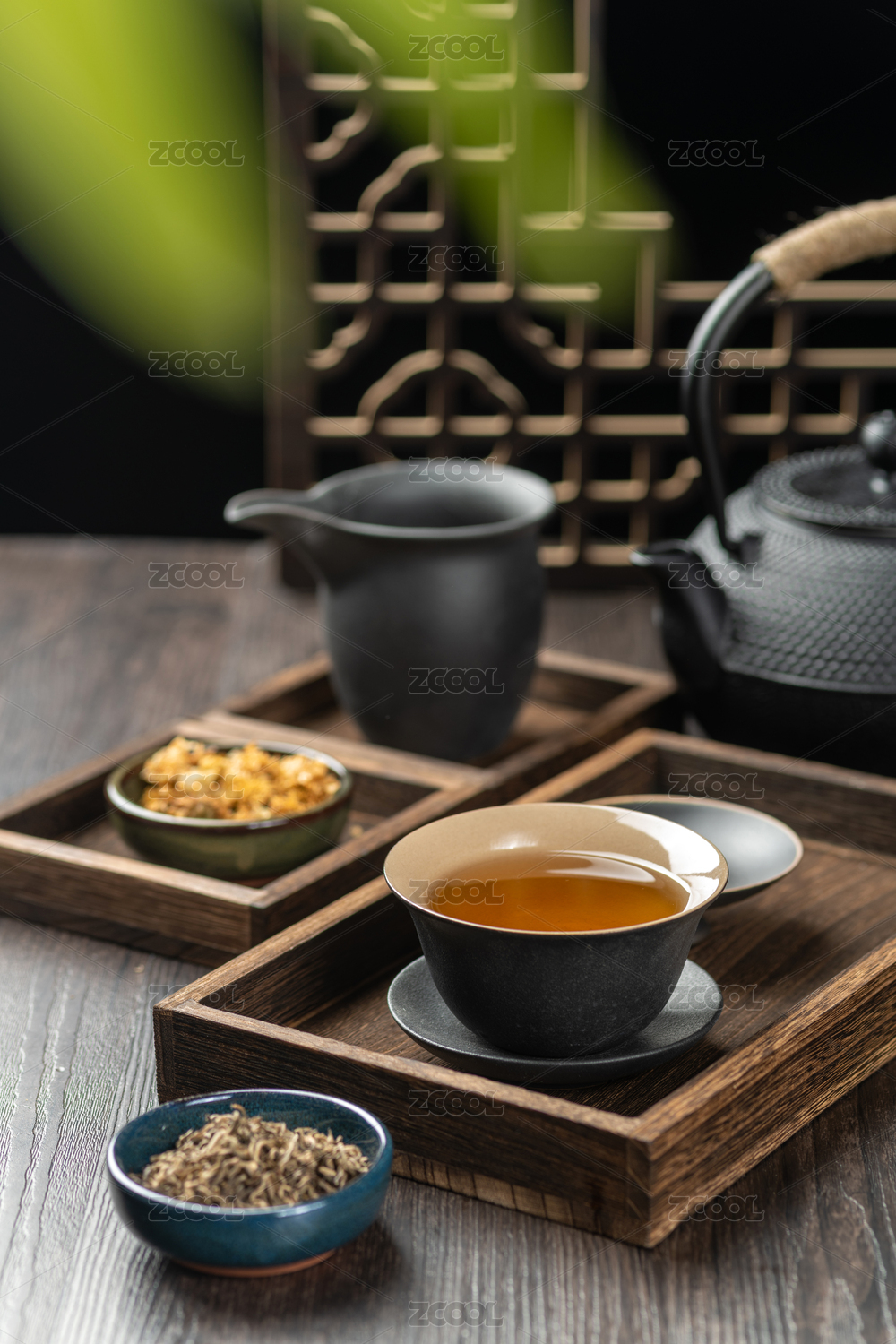 一杯蓋碗茶特寫中國風(fēng)深色調(diào)