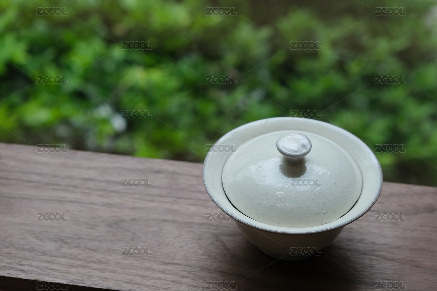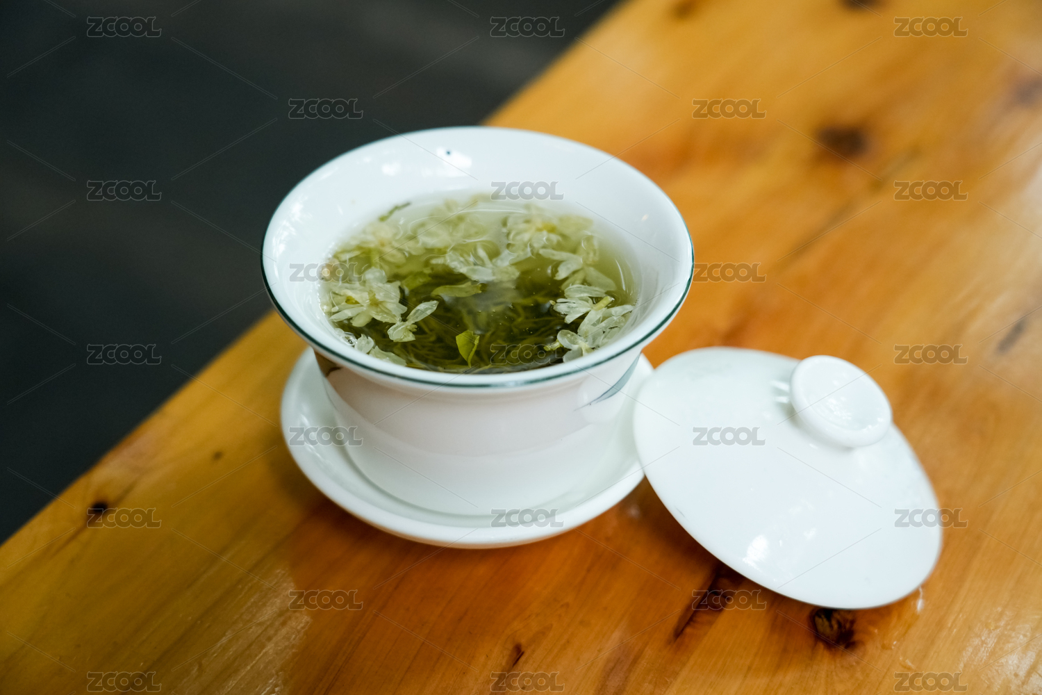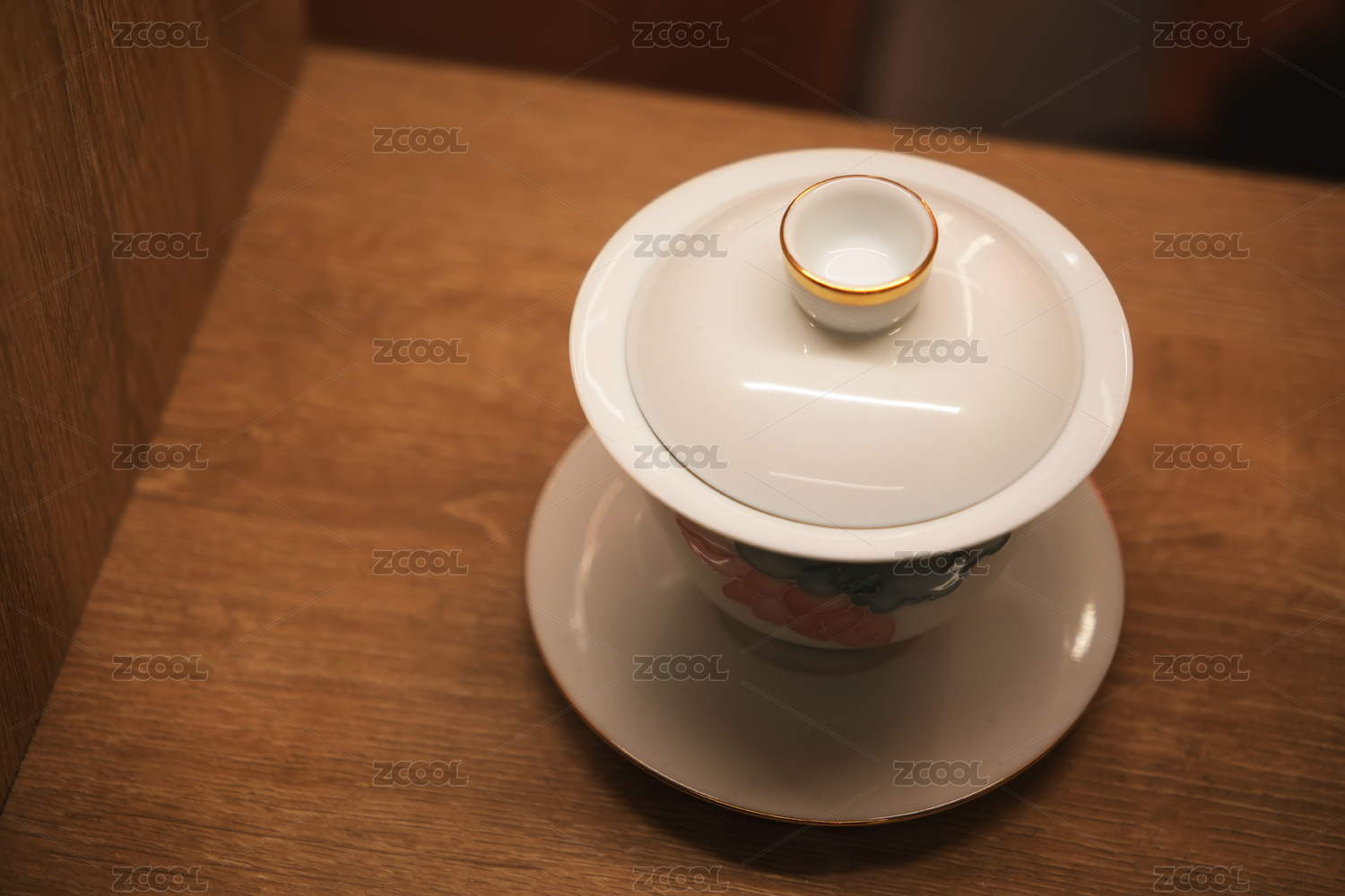 一個傳統(tǒng)的中國蓋碗茶在木桌上的特寫