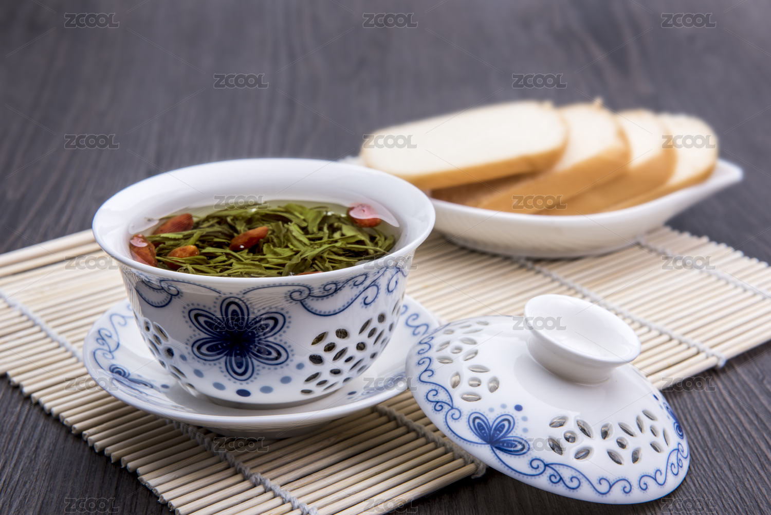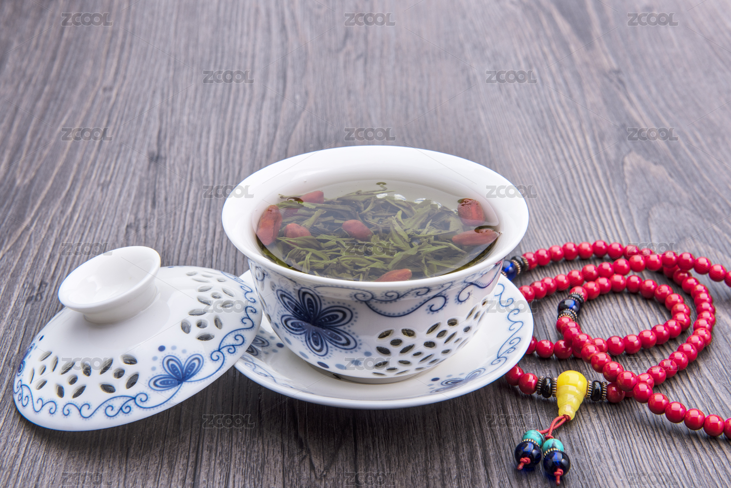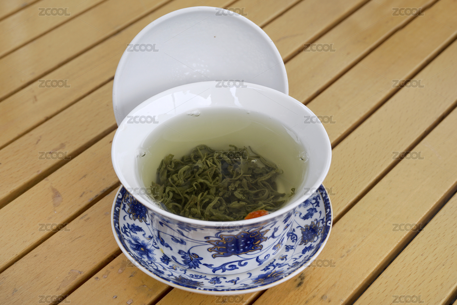 一個傳統(tǒng)的中國蓋碗茶在木桌上的特寫