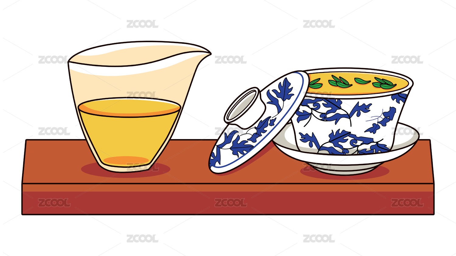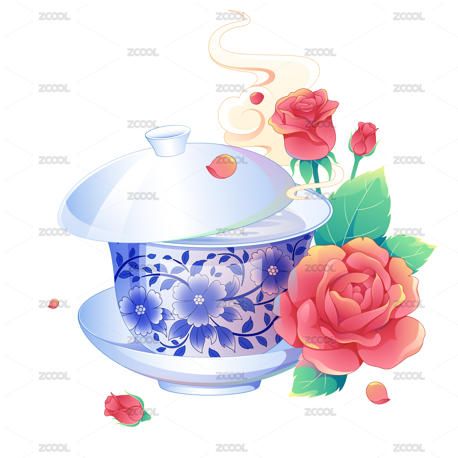 國風(fēng)蓋碗茶玫瑰花茶插畫