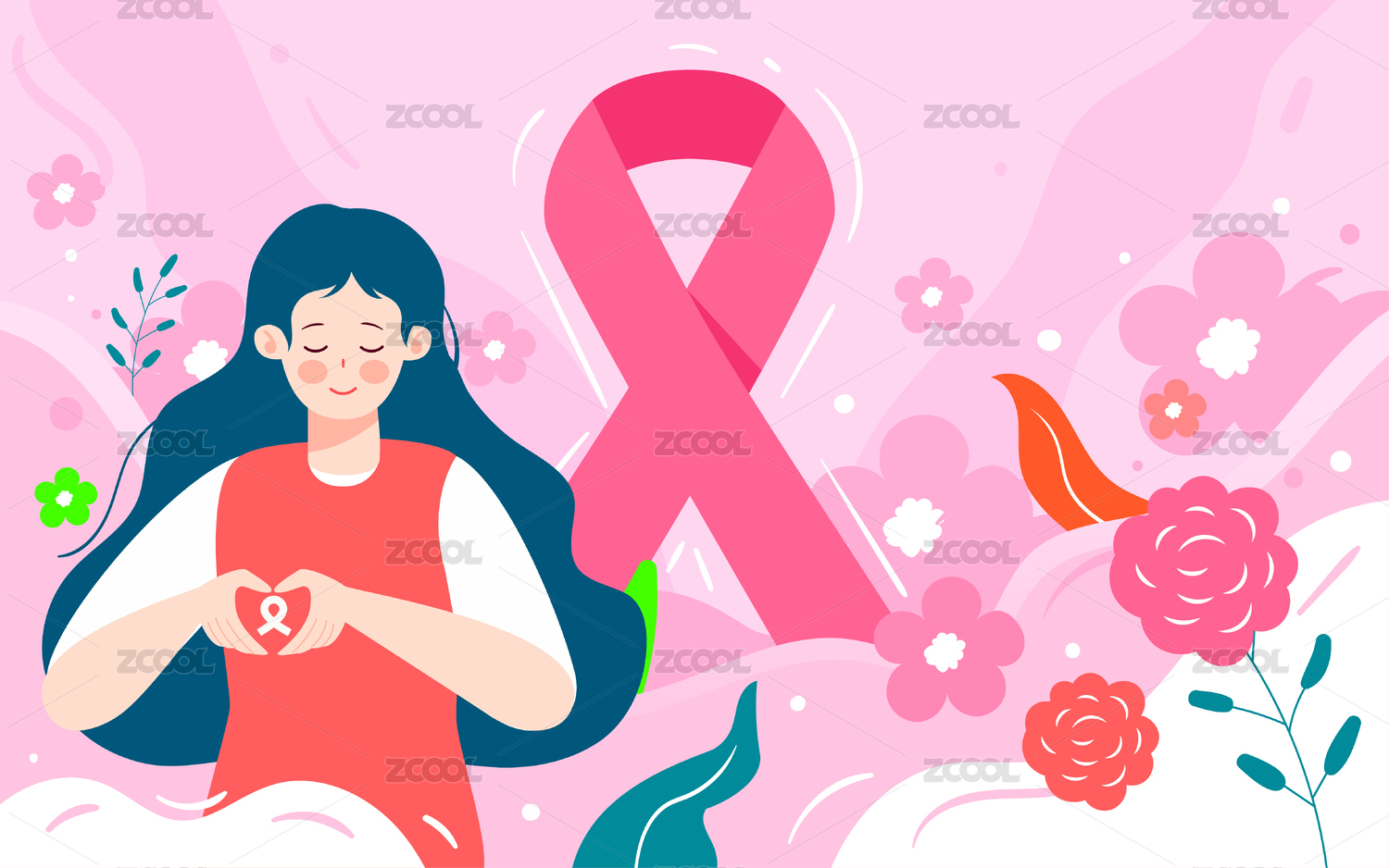 乳腺癌月關(guān)注女性健康插畫醫(yī)療癌癥腫瘤海報(bào)