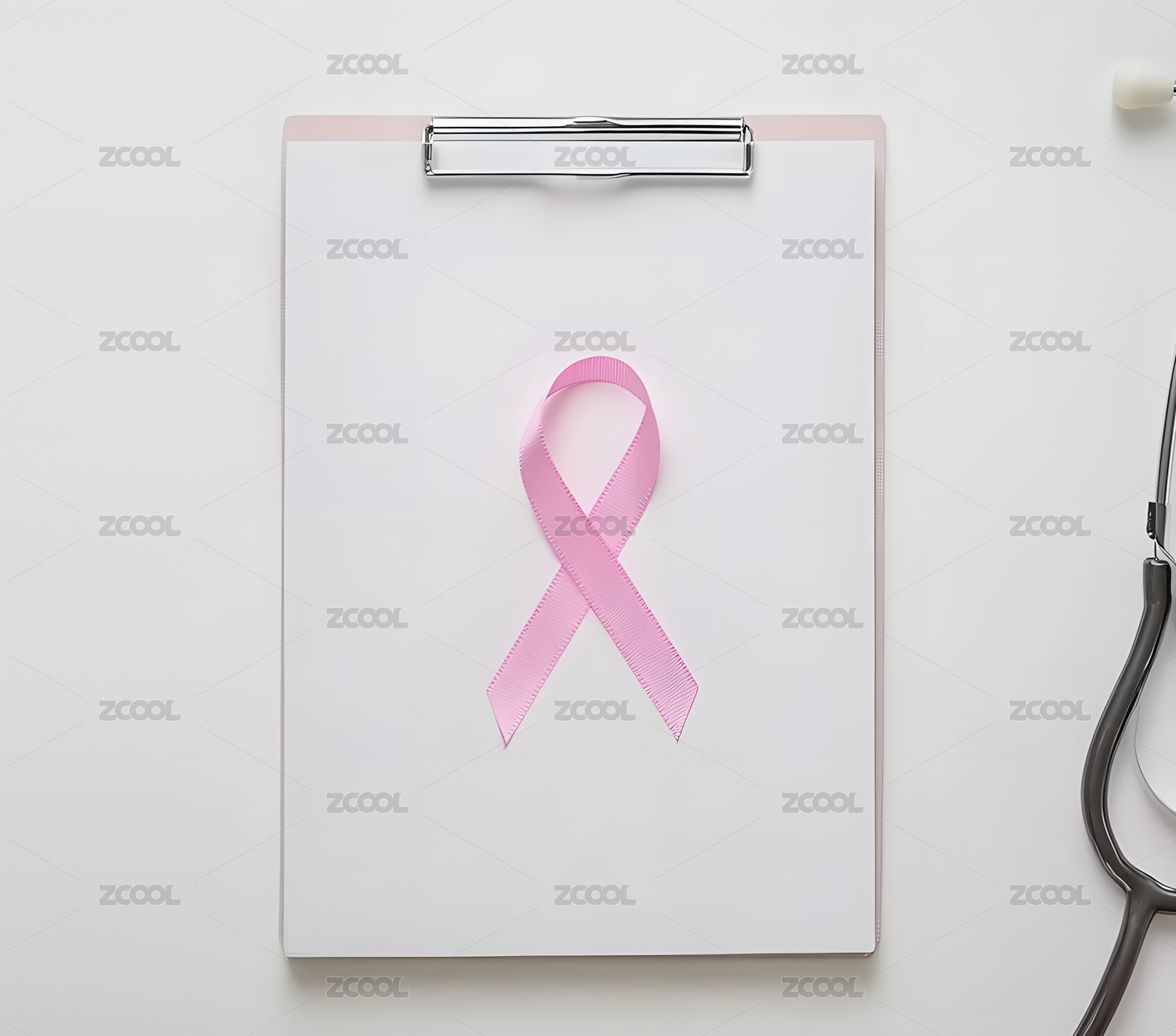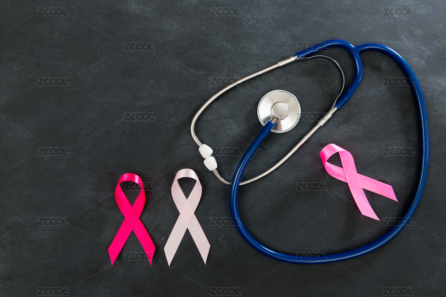 乳腺癌意識(shí)宣傳粉色絲帶和聽診器